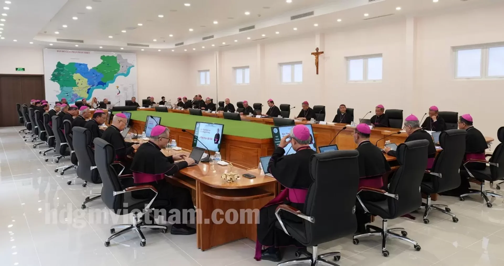 WHĐ (17/9/2024) – Chiều ngày 16 tháng 9 năm 2024, toàn thể Hội đồng Giám mục Việt Nam (HĐGM) đã qui tụ để cùng Giáo phận Phan Thiết khánh thành và làm phép Nhà khách Trung tâm Thánh Mẫu Tà Pao.