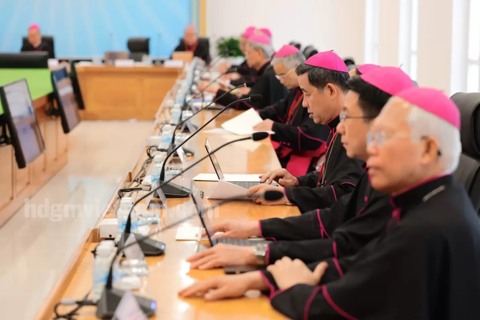 Sau Phiên họp khai mạc với sự hiện diện của 31 vị gồm: Tổng Giám mục (TGM) và Giám mục của 27 Giáo phận cùng với Ban Thư ký, Hội nghị đã dành nhiều thời gian cho Ủy ban Loan báo Tin Mừng trình bày thực trạng, nhu cầu và gợi ý lộ trình cho sứ vụ Loan báo Tin Mừng. Quý Đức cha đã chia sẻ kinh nghiệm và suy tư, thảo luận về những phương thức và thách thức trong sứ vụ loan báo Tin Mừng của thế giới và địa phương. Đức cha Emmanuel Nguyễn Hồng Sơn, Chủ tịch Ủy ban Phụng tự đã trình bày về chương trình Năm Thánh 2025 của Giáo hội hoàn vũ và những hướng dẫn cử hành tại các giáo phận.