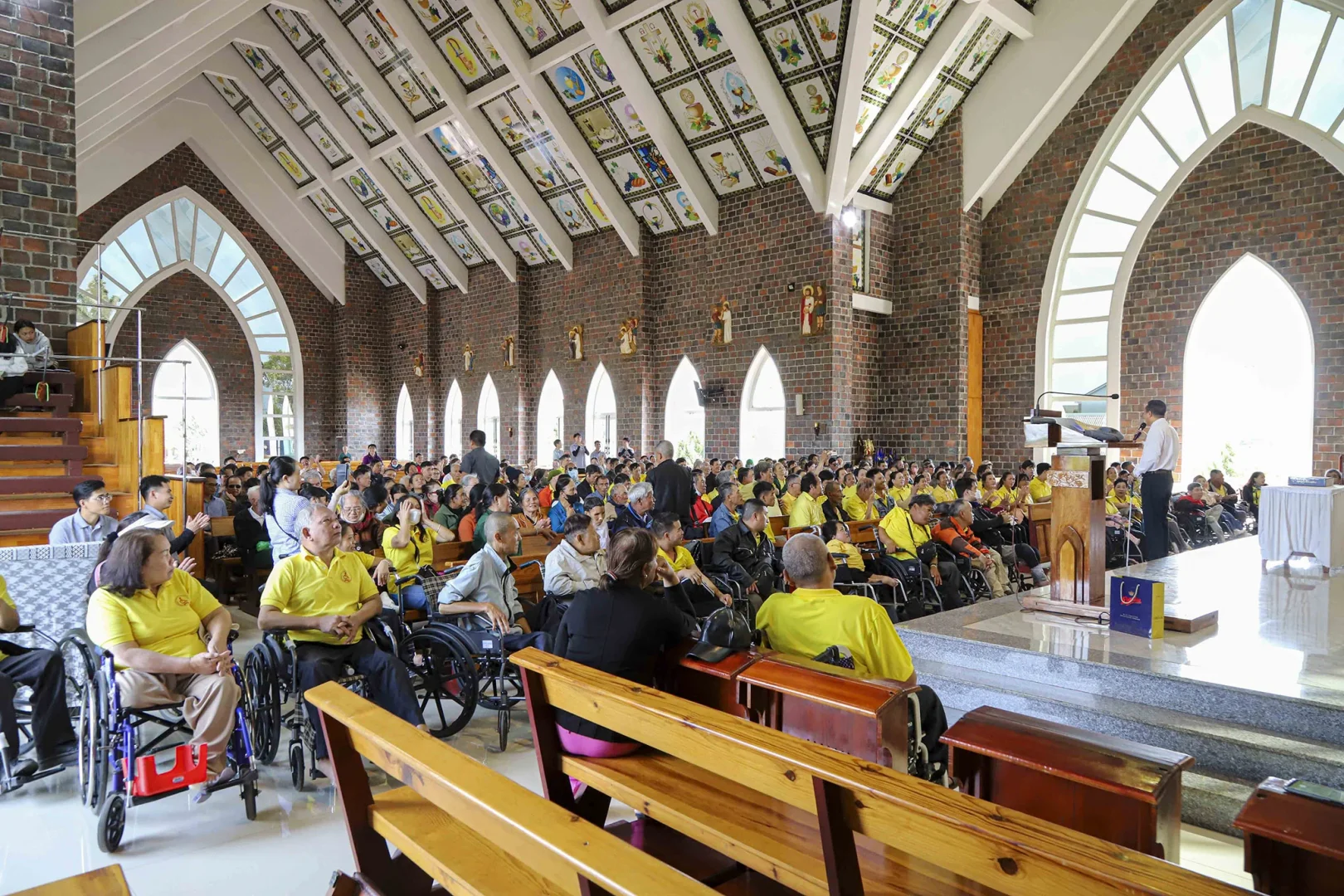 Nhận lời mời của Cha Gioan Baotixita Đỗ Hùng Tiến – Trưởng ban Loan Báo Tin Mừng (LBTM) giáo phận, đông đảo anh chị em khuyết tật và khiếm thị huyện Đức Trọng đã đến tham dự ngày họp mặt tại Nhà thờ Giáo xứ Thánh Giuse Bình Thạnh vào Chúa nhật thứ IV mùa Chay 10/03/2024.
