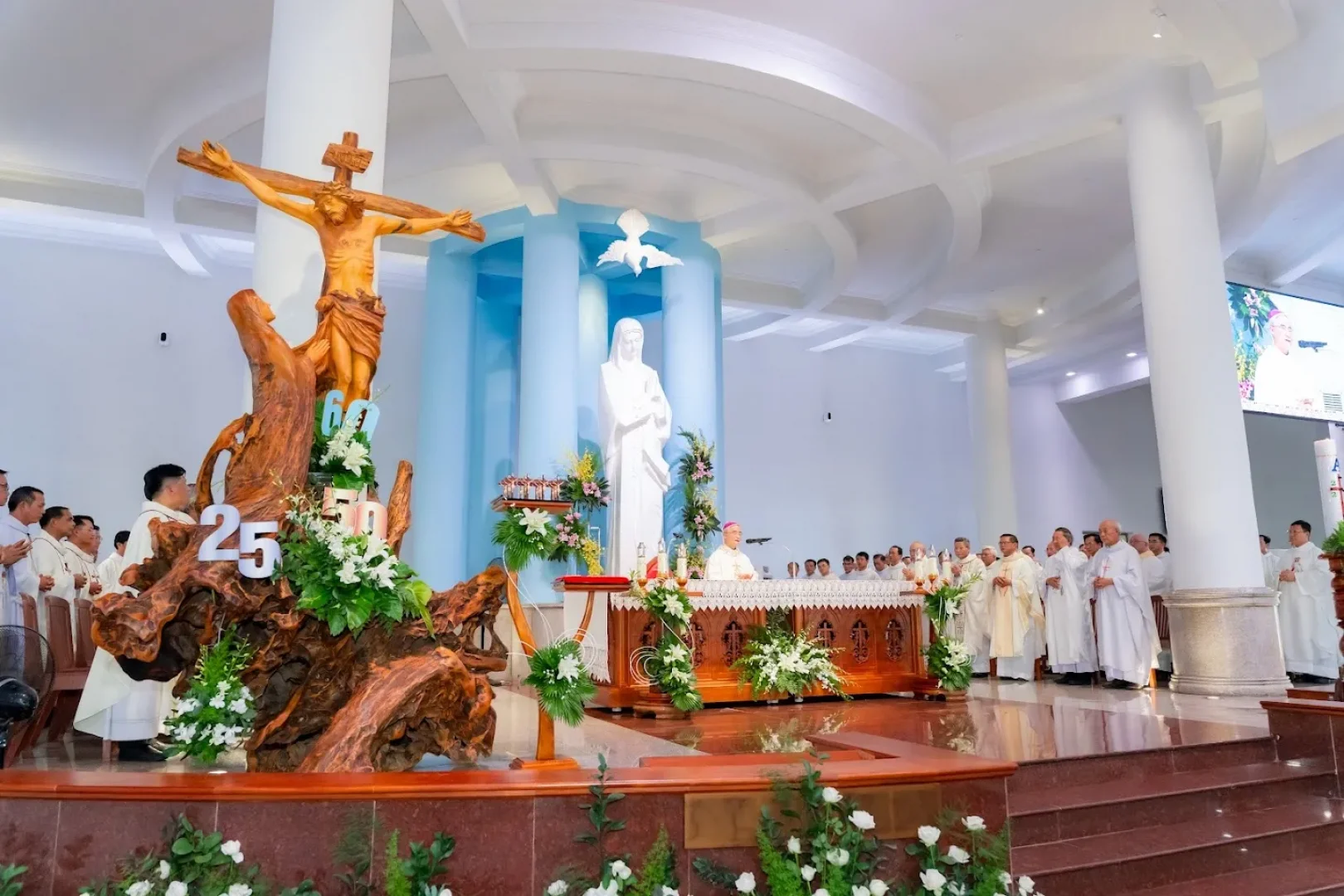 Ngày 06/06/2025 là ngày Chị em Hội dòng Mến Thánh Giá Đà Lạt cảm nếm hồng ân lớn lao cách đặc biệt vì được quy tụ về bên Mẹ Núi Cúi để tổ chức Thánh lễ Tuyên khấn Vĩnh viễn cho 12 chị và mừng kỷ niệm Hồng ân Thánh hiến của 1 chị Ngọc khánh, 7 chị Kim khánh và 17 chị Ngân khánh Khấn dòng. Việc tổ chức lễ khấn xa nhà dòng lại là dịp để chị em “lên Núi” với Chúa. Cuộc lên núi được Mẹ Núi Cúi giang tay chờ đón và đồng hành.