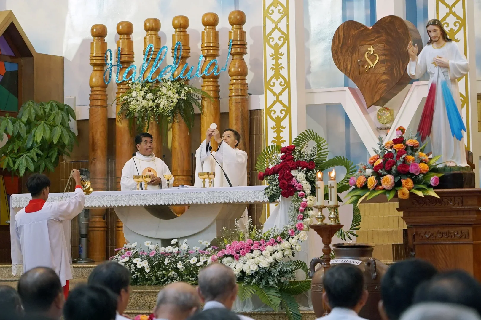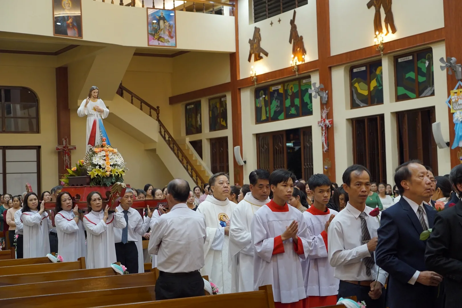 Hiệp dâng thánh lễ có quý Tu sĩ nam nữ, đông đảo cộng đoàn giáo dân trong giáo xứ, đặc biệt quý hội viên trong Hội Lòng Chúa Thương Xót trong và ngoài giáo xứ.