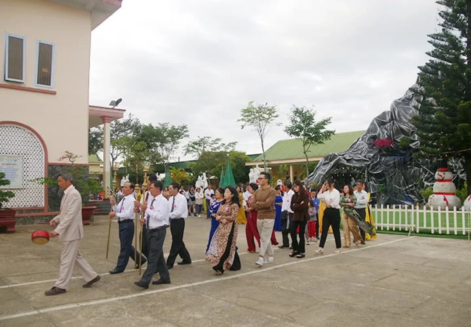 Trong phần giảng lễ, Cha Quản xứ Giuse Nguyễn Văn Tú đã chia sẻ với cộng đoàn hiện diện: “Mặc dù là Thiên Chúa, Đức Giêsu đã hạ mình xuống vâng phục và đón nhận những lời chỉ bảo của Mẹ Maria và Thánh Giuse. Trong Thánh gia có một sự đảo lộn đáng cho chúng ta suy nghĩ: Trước mặt người đời thì Thánh Giuse là chủ rồi đến Mẹ Maria và sau cùng là Chúa Giêsu. Nhưng trước mặt Thiên Chúa thì trước hết lại là Chúa Giêsu, rồi đến Đức Mẹ và Thánh Giuse. Thế nhưng Chúa Giêsu vẫn vui vẻ vâng lời hai Đấng. Trong đời sống gia đình, ước gì những người con biết noi gương Chúa Giêsu vâng theo những lời chỉ bảo của mẹ cha vì “cá không ăn muối cá ươn, con cưỡng cha mẹ trăm đường con hư.” Sở dĩ như vậy vì khi dạy bảo, cha mẹ luôn yêu thương con cái và mong muốn cho con cái nên người.