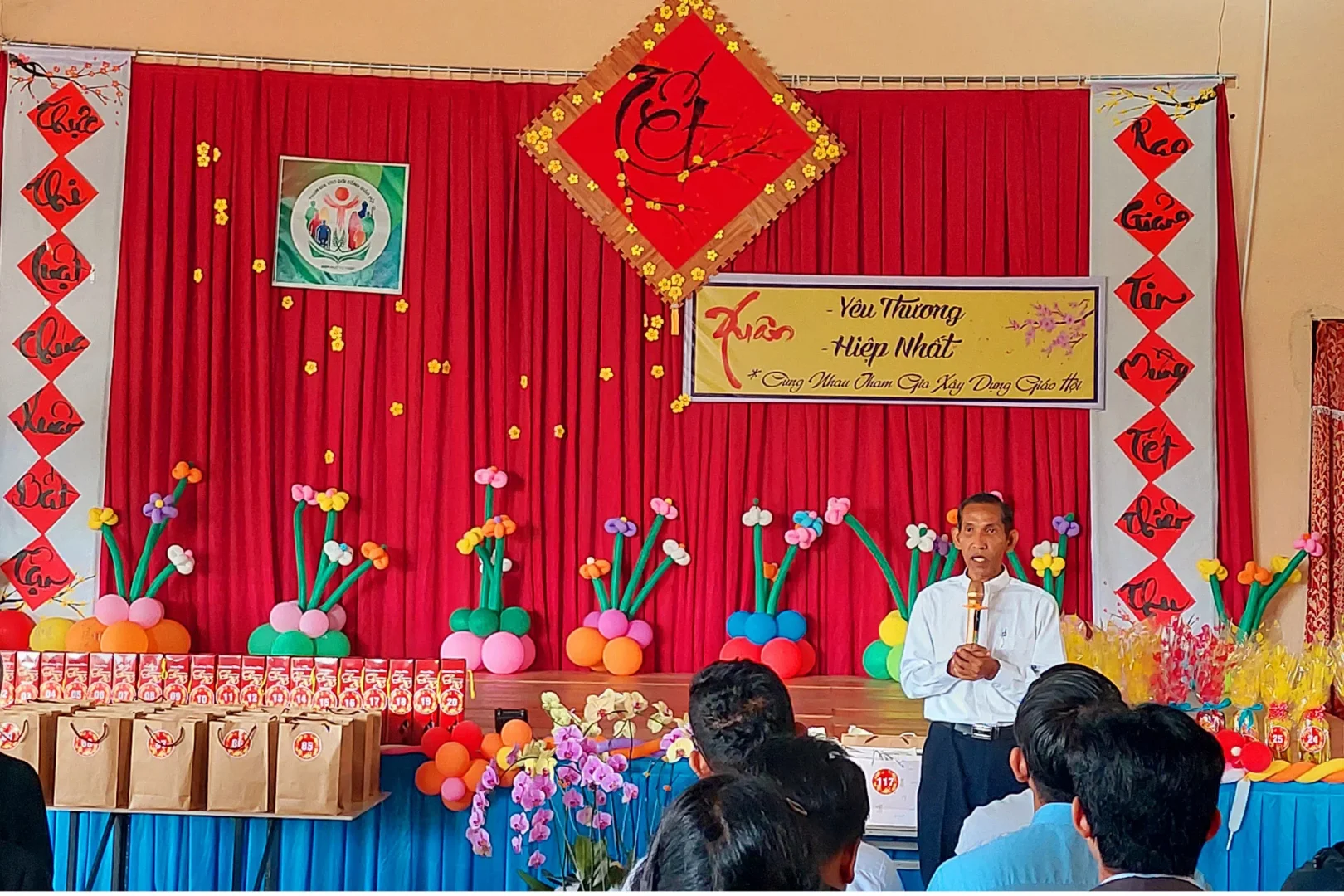 Kết thúc thánh lễ, Cha trưởng ban đại diện đã chúc tết Đức Cha, Cha Quản lý, quý Cha, quý Tu sĩ và bà con giáo dân Giáo sở Đăng Srồn.