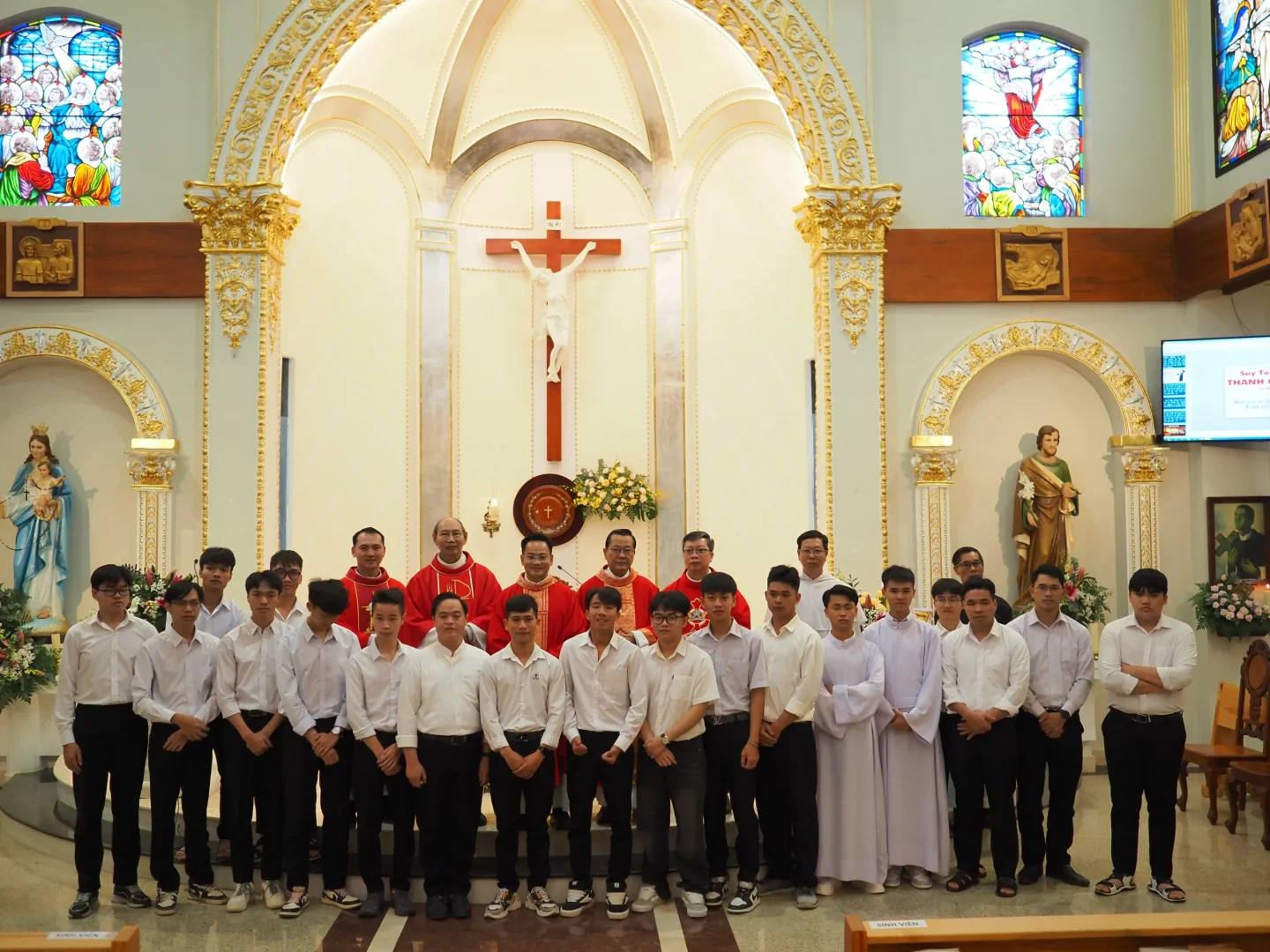 Tham dự Thánh lễ Khai giảng có quý Tu huynh trong cộng đoàn, quý Soeurs, quý ân nhân, quý phụ huynh, quý thân hữu gần xa của lưu xá cùng 20 em sinh viên.
