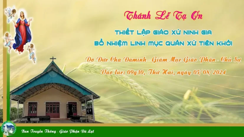 Trực tuyến Thánh Lễ Tạ Ơn và Thiết Lập Giáo Xứ ĐỨC MẸ VÔ NHIỄM – Lúc 16h30, ngày 09/08/2024 09/08/2024