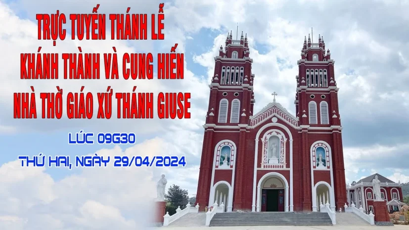 Trực tuyến Thánh Lễ Khánh Thành và Cung Hiến Nhà Thờ Thánh Giuse. Lúc 09g30. Thứ Hai 29/04/2024 29/04/2024