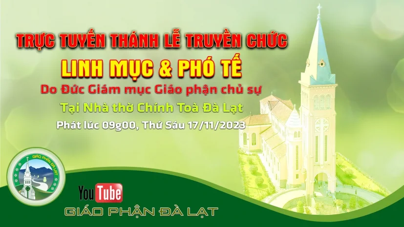 Trực tuyến Thánh Lễ Truyền Chức Phó tế & Linh mục. Phát lúc 09g00. Tại Nhà thờ Chính Toà Đà Lạt 16/11/2023
