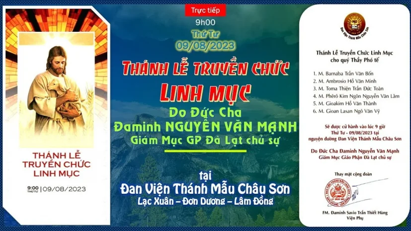 ⭕️LIVE: 09h00 | 09.8.2023 | Thánh Lễ Truyền Chức Linh Mục | Đan Viện Thánh Mẫu Châu Sơn | Đơn Dương. 09/08/2023