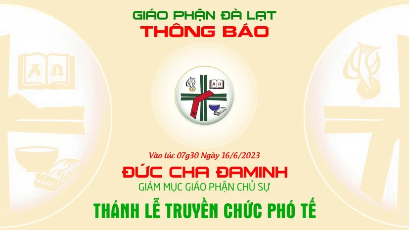 THÔNG BÁO | TRUYỀN CHỨC PHÓ TẾ | Ngày 16/6/2023, Do Đức Cha Đaminh, Giám Mục Giáo Phận chủ sự 15/06/2023