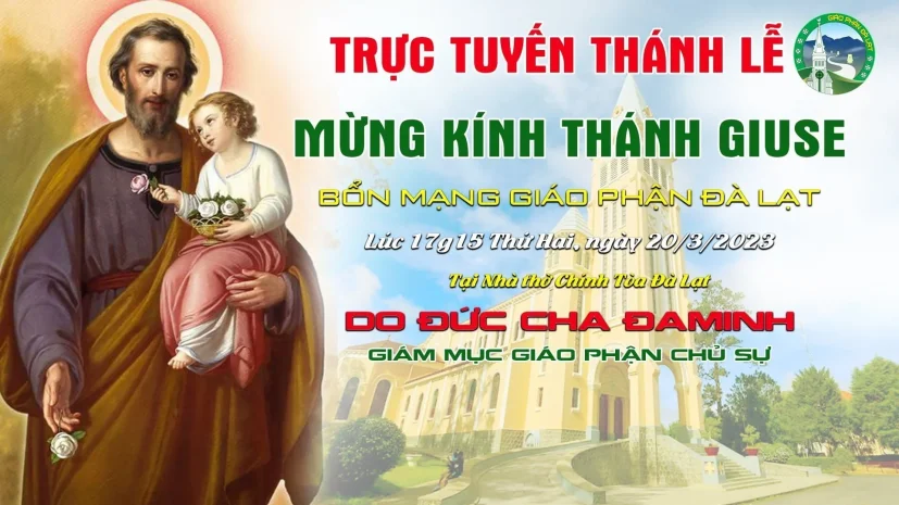 Thánh Lễ Mừng Thánh Giuse. Do Đức Cha Đaminh chủ sự. Phát lúc 17g15, ngày 20/3/2023