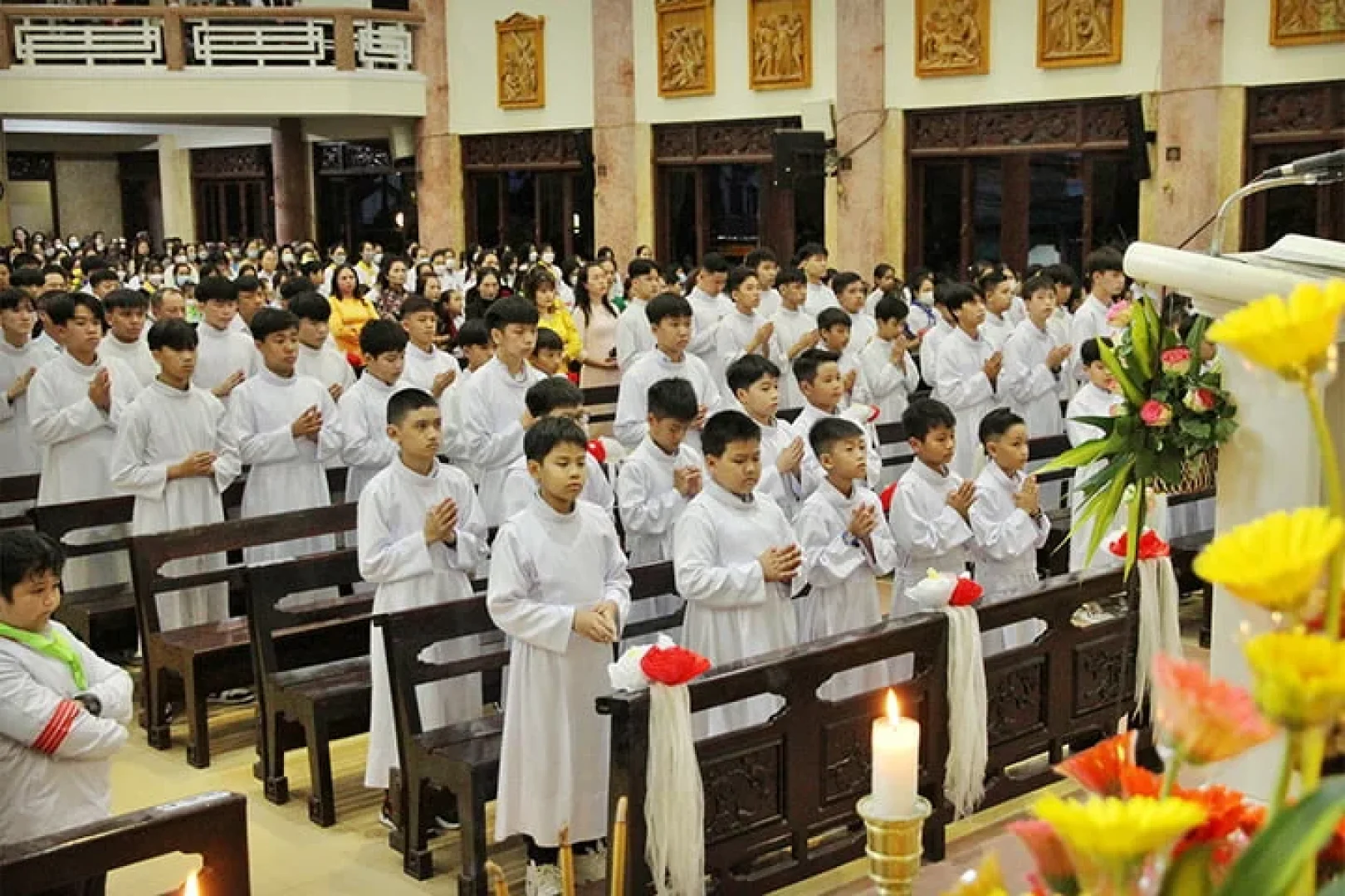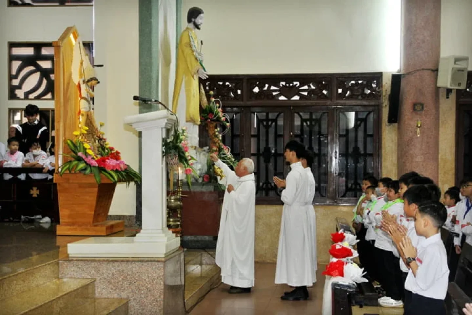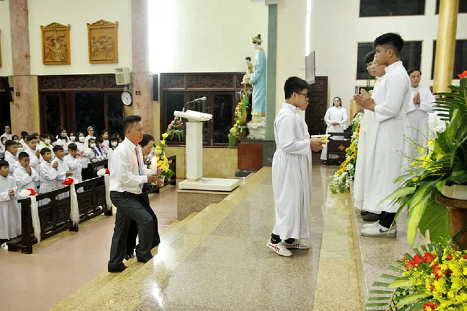 Hoà cùng niềm vui với Giáo hội toàn cầu trong ngày mừng kính các Tổng Lãnh Thiên Thần, lúc 17g15 ngày 29-9-2022 tại Thánh đường Giáo xứ Thánh Tâm – Lộc Tiến, Cha Quản xứ Phaolô Dương Công Hồ đã cử hành Thánh Lễ mừng Bổn mạng và tuyên hứa của Ban Lễ Sinh. Đặc biệt trong Thánh lễ hôm nay, Cha Quản xứ đón nhận 26 Em gia nhập Ban Lễ Sinh của Giáo xứ. Để chuẩn bị tâm hồn cho ngày Lễ Bổn Mạng, các Em đã có buổi tĩnh tâm, xưng tội, và nhìn lại những hoạt động trong năm vừa qua.
