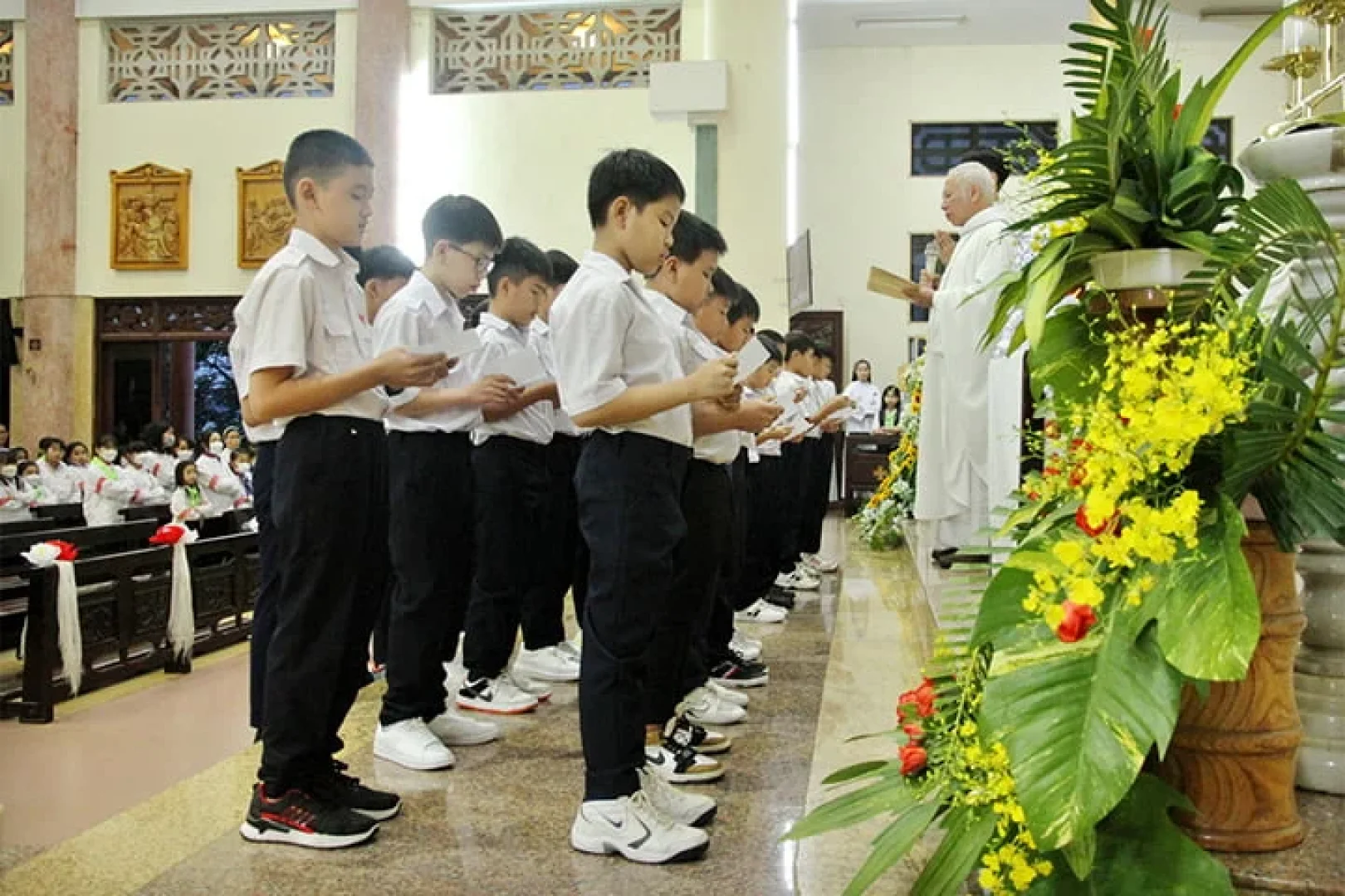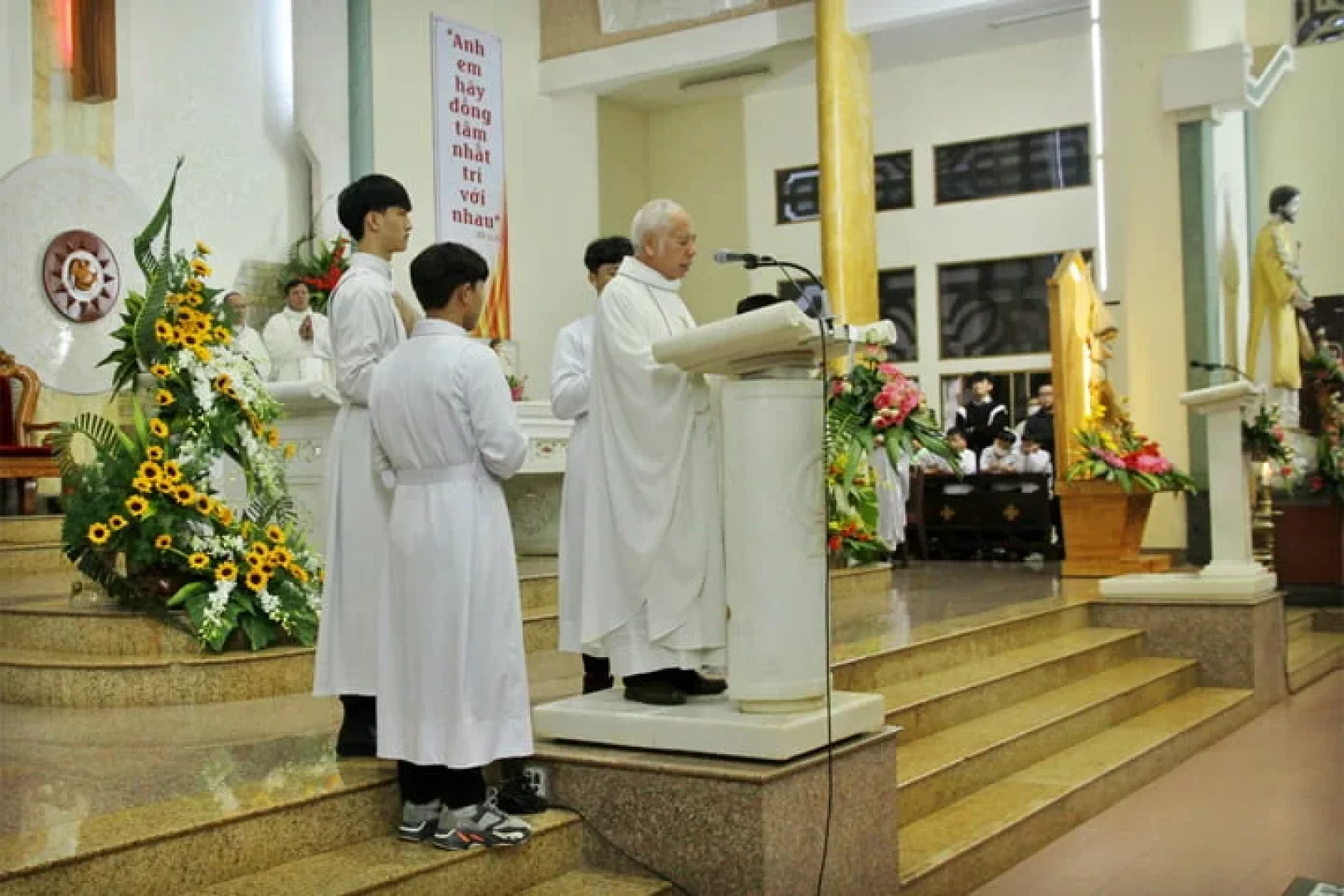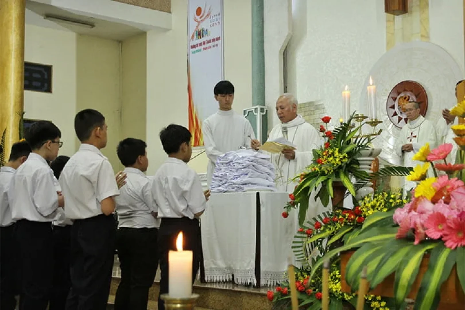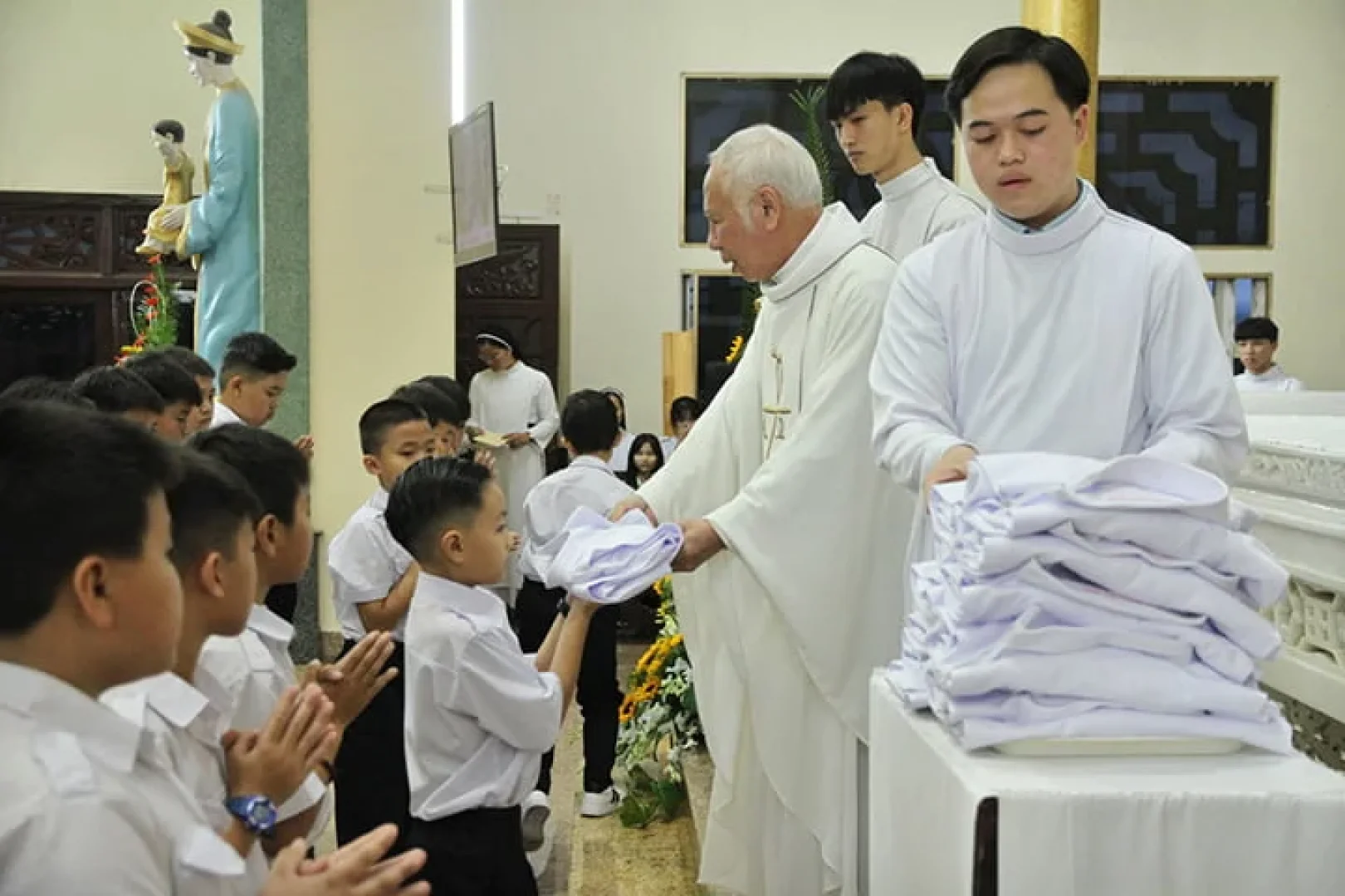 Nghi thức tuyên hứa cho 26 Em mới tham gia vào Ban Lễ sinh được Cha Phaolô cử hành một cách trang nghiêm. Các em lãnh nhận chiếc áo giúp lễ mới như một dấu chỉ lãnh nhận sứ vụ phục vụ mới của mình.