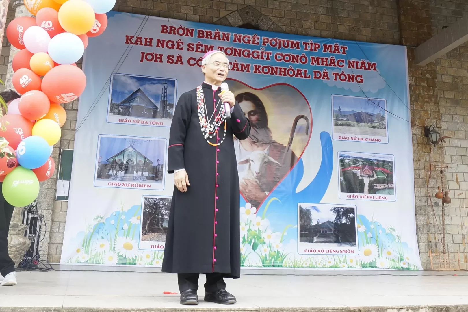 Niềm vui như tỏa sáng nơi các anh chị em dân tộc khi đón tiếp Đức Cha Đaminh, Giám mục Giáo phận Đà Lạt, đến chủ sự thánh lễ cầu nguyện cho việc truyền giáo. Trong Thánh lễ đồng tế với các cha trong giáo hạt, Đức cha dẫn đưa cộng đoàn vào Thánh lễ với bài hát Añ chờhờp (Tôi mừng vui), đây là niềm vui của ơn Cứu độ, của việc sai đi loan báo Tin Mừng. Trong bài giảng, triển khai đoạn Tin Mừng Matthêu (22, 1-14) kể dụ ngôn tiệc cưới, là đoạn Tin Mừng được Đức Thánh Cha Phanxicô chọn làm sứ điệp cho ngày Truyền giáo năm 2024, Đức Cha khẳng định: Lệnh truyền “hãy đi” là nền tảng của mọi sứ vụ tông đồ trong Hội Thánh. Người giáo dân cũng được sai đi khi chịu phép Rửa tội; trong thánh lễ, được sai đi khi chủ tế nói: Lễ xong chúc anh chị em đi bình an…