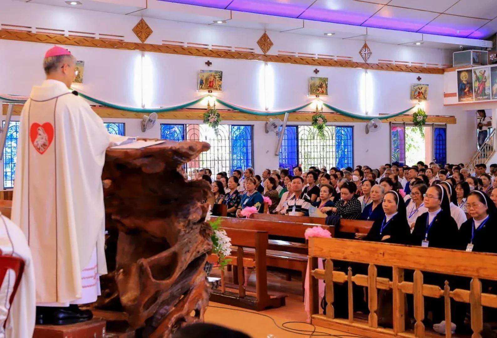 Trong phần giảng lễ, Đức Cha Đaminh chia sẻ với cộng đoàn: “Cả 3 bài đọc trong thánh lễ hôm nay đều quy chiếu về một điểm đó là Loan Báo Tin Mừng. Cụ thể, trong bài đọc thứ nhất (Cv 20, 17 – 27), thánh Phaolô đã tâm sự với các kỳ mục trong Hội Thánh: nỗi thao thức của Ngài không gì khác ngoài bận tâm Loan Báo Tin Mừng. Đến bài đọc 2 (1Cr 9) cũng thánh Phaolô thốt lên niềm xác tín mãnh liệt về sứ vụ Loan Báo Tin Mừng của Ngài: “Khốn thân tôi nếu tôi không rao giảng Tin Mừng!”. Và kết thúc, tôi “thông chia phần phúc của Tin Mừng” vì Tin Mừng tôi xả thân cho trọn vẹn và tất cả… Thánh Phaolô là mẫu gương sống động và tuyệt vời của người Loan Báo Tin Mừng, đã thực thi trọn vẹn chỉ thị truyền giáo của Chúa Giêsu trong tin mừng theo thánh Matthêu (Mt 10). Từ chỉ thị truyền giáo này, chúng ta có thể rút ra 3 khía cạnh: Khía cạnh thứ nhất: tại sao phải loan báo Tin Mừng? Khía cạnh thứ hai: Loan báo điều gì? Và khía cạnh thứ ba: Loan báo thế nào?”. Ngài cũng dựa vào Tin Mừng để dẫn giải 3 khía cạnh đó cách trọn vẹn nhất, bình dân nhất.
