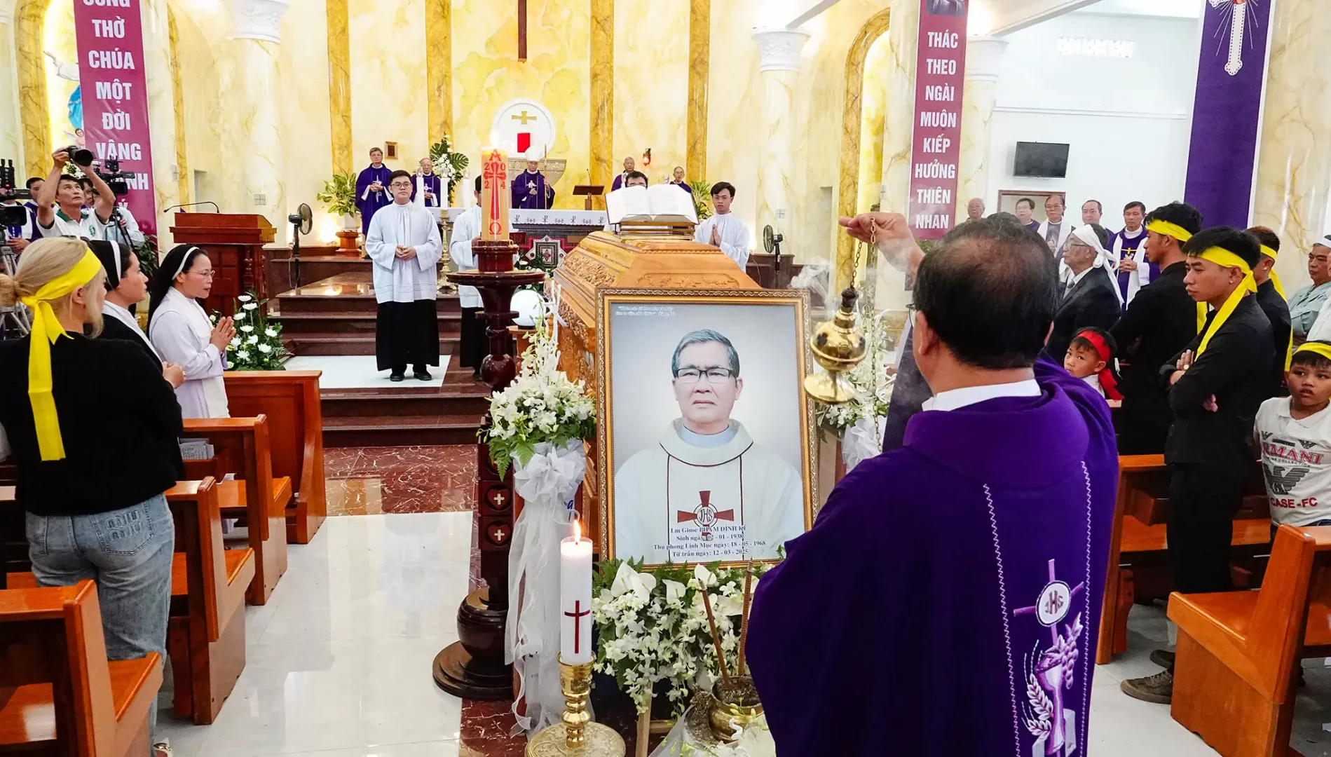 Sáng thứ sáu ngày 14/03/2025, Đức cha Đaminh Nguyễn Văn Mạnh đã chủ tế Thánh lễ An táng Cha Cố Giuse Phạm Đình Kế, tại nhà thờ Giáo xứ Tân Thanh, Giáo hạt Bảo Lộc. Đồng tế với Đức cha Đaminh có Đức cha Antôn Vũ Huy Chương – nguyên Giám mục Giáo phận Đà Lạt, quý Cha trong và ngoài giáo phận. Hiệp dâng thánh lễ còn có rất đông quý Tu sĩ nam nữ, giáo dân Giáo xứ Tân Thanh và các Giáo xứ mà Cha Cố đã phục vụ cùng với linh tông, thân bằng quyến thuộc của Ngài.