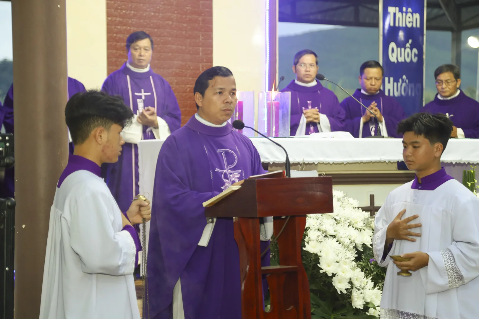 Lúc 17g00 Chúa nhật ngày 2/11/2025, trong bầu khí linh thiêng và trang nghiêm của ngày Lễ cầu cho các tín hữu đã qua đời, quý Cha, quý Tu sĩ cùng đông đảo cộng đoàn Dân Chúa thuộc ba Giáo xứ Liên Khương, Tùng Nghĩa và Nghĩa Lâm đã quy tụ về nghĩa trang chung của ba giáo xứ để hiệp dâng Thánh lễ cầu nguyện cho các linh hồn. Thánh lễ do Cha Giuse Vũ Duy Bảo – Quản xứ Liên Khương chủ sự. Đồng tế với ngài có Cha Quản xứ và Cha Phó giáo xứ Nghĩa Lâm, cùng quý Cha Phó Giáo xứ Tùng Nghĩa. Sự hiện diện của quý Tu sĩ cùng đông đảo cộng đoàn Dân Chúa đã làm cho bầu khí phụng vụ thêm phần trang nghiêm, linh thiêng và thấm đượm tình hiệp nhất.