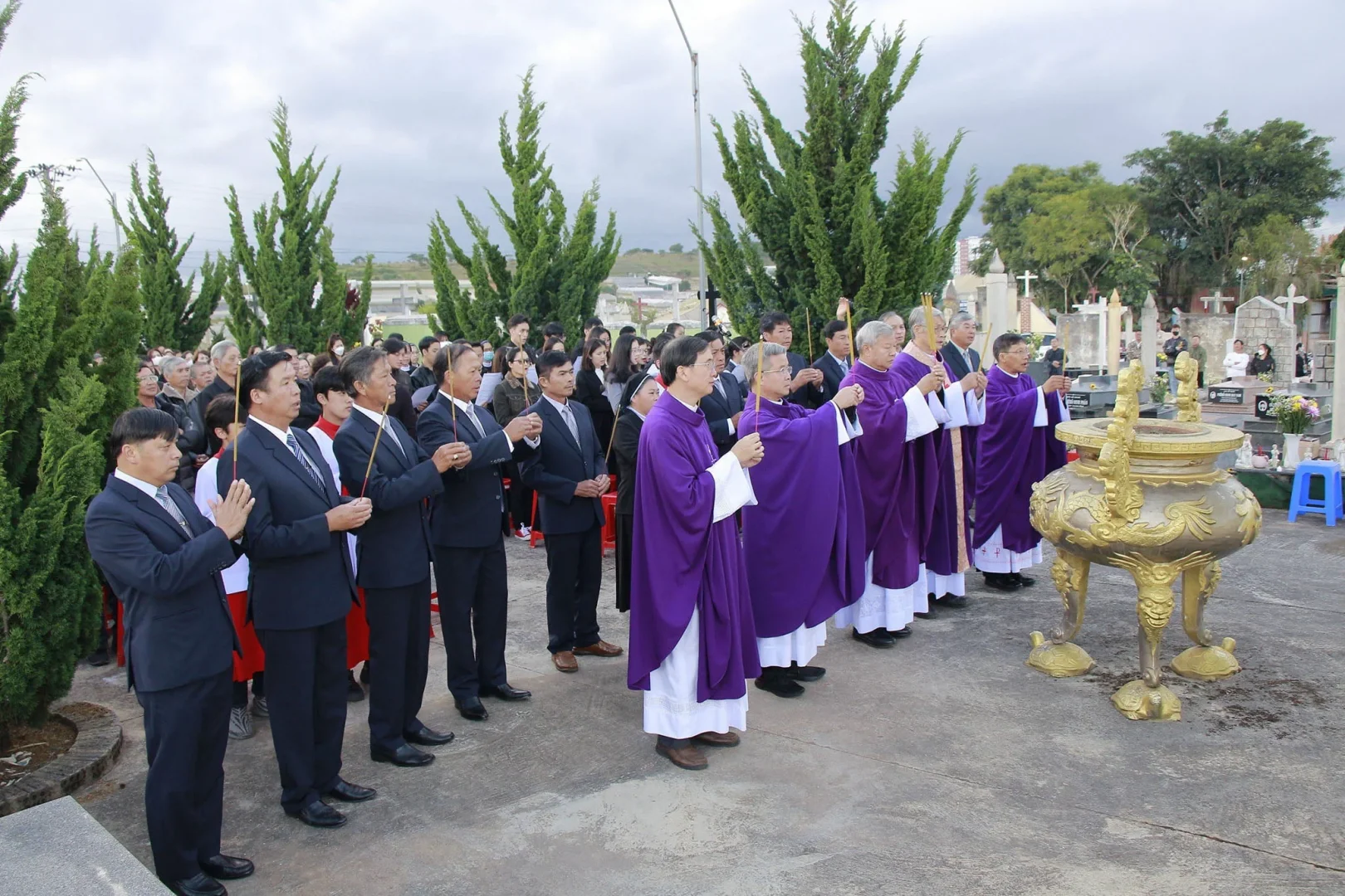 Chiều ngày 2/11/2023 tại Nghĩa trang Giáo xứ Thánh Mẫu, Cha Tổng Đại diện Gioan Boscô Hoàng Văn Chính cùng với Cha Phêrô Mai Vinh Sơn – Quản xứ Thánh Mẫu, Cha Giuse Nguyễn Văn Linh – Dòng Vinh Sơn, Cha Đaminh Nguyễn Quốc Việt và Cha Gioan Cao Thái Bình – ĐCV Minh Hòa dâng thánh lễ cầu nguyện cho các Đẳng linh hồn.