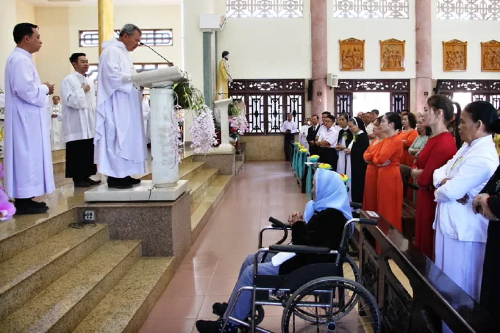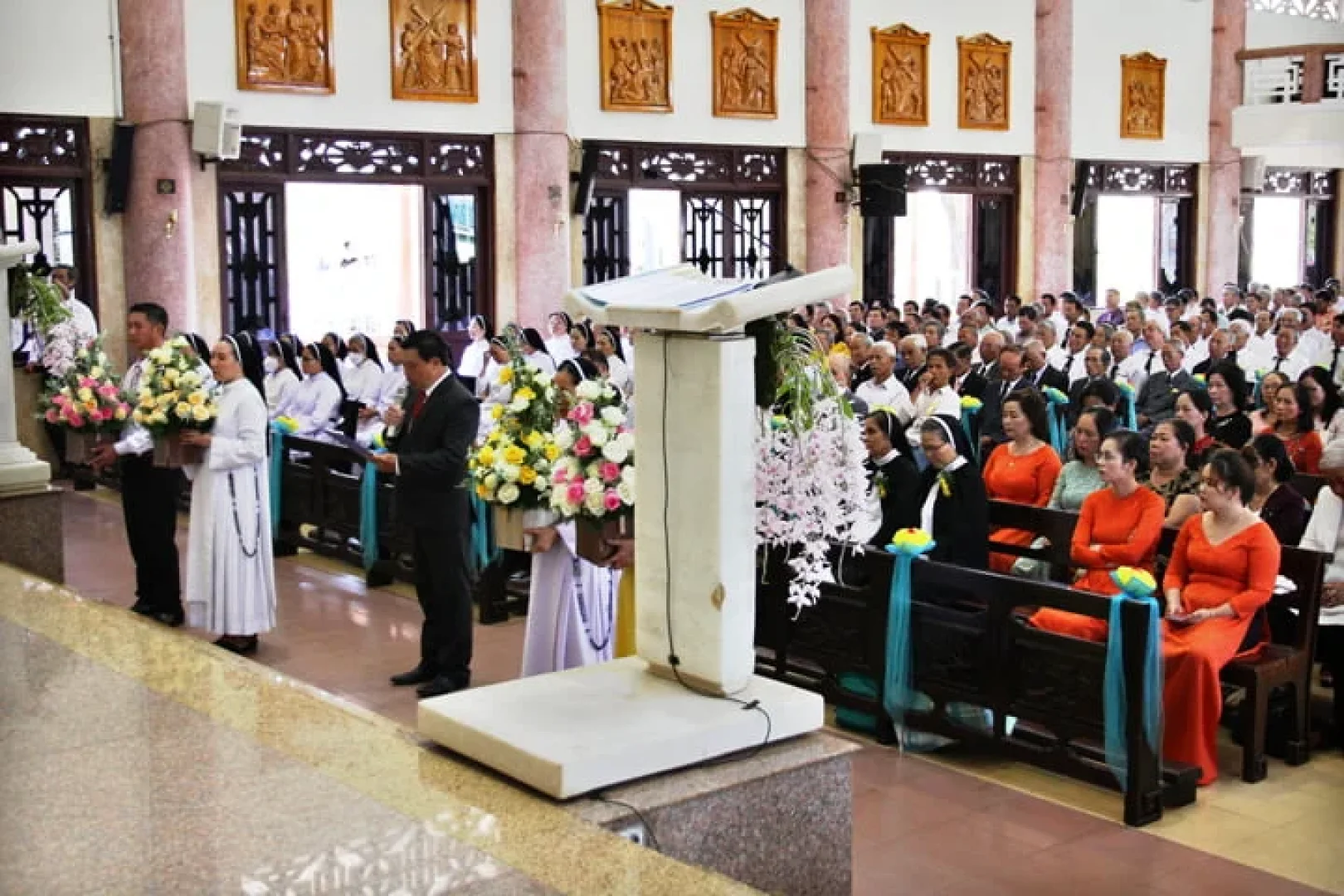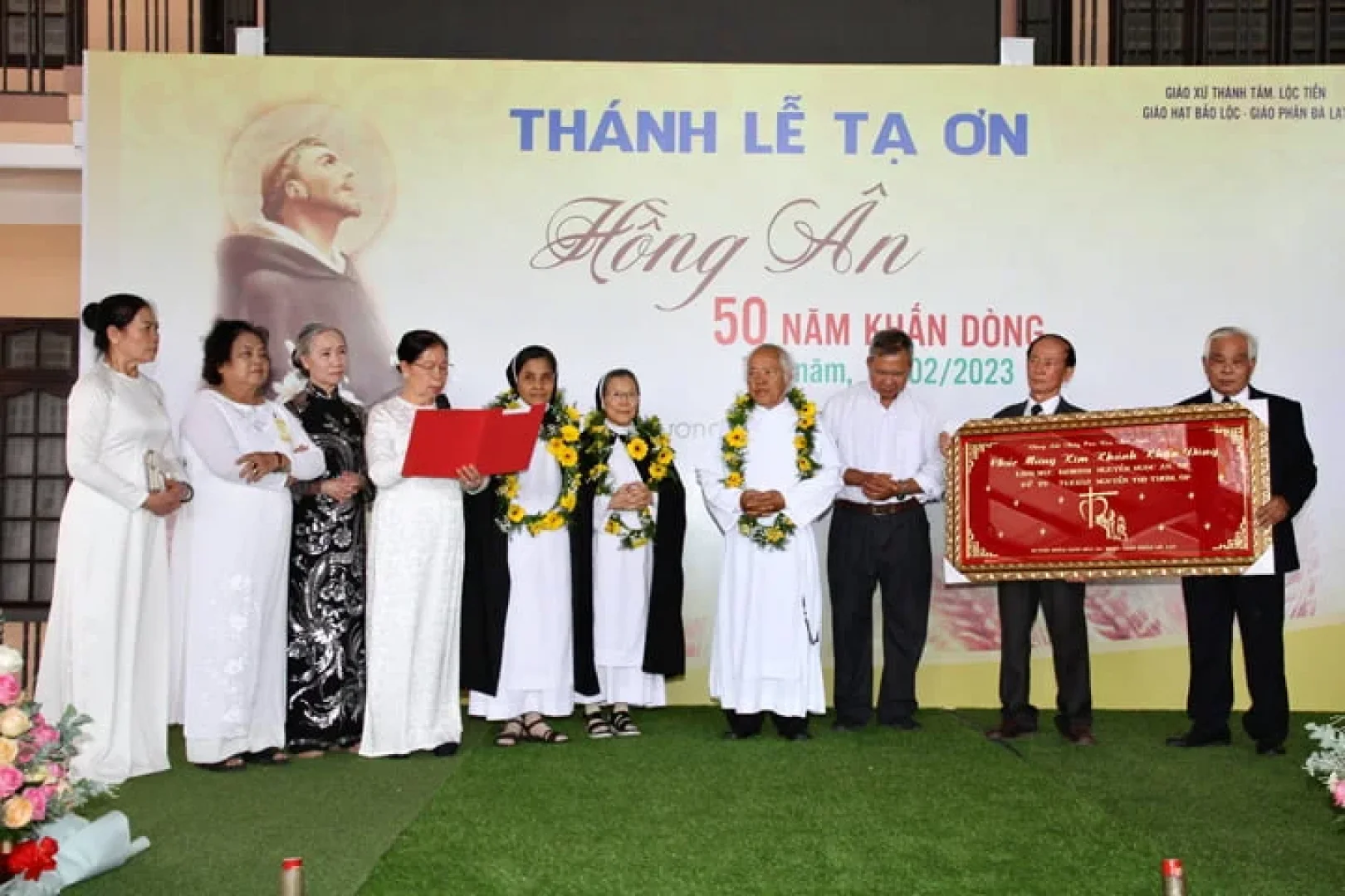 Thánh lễ Tạ ơn đã được cử hành lúc 10g00 ngày 16/02/2023, tại Nhà thờ Giáo xứ Thánh Tâm – Lộc Tiến, Giáo hạt Bảo Lộc, do Cha Đaminh Nguyễn Ngọc An Chủ tế cùng quý Cha trong và ngoài Dòng. Tham dự Thánh lễ còn có quý Tu sĩ nam nữ, quý ân nhân, thân nhân, quý Ban Phục vụ Huynh đoàn Giáo dân Đaminh, 4 Liên huynh, 27 Huynh đoàn trong Giáo phận Đà Lạt; đại diện các đoàn thể Giáo xứ Long Thành – Giáo phận Xuân Lộc; các học trò của quý Cha …và cộng đoàn Giáo xứ Thánh Tâm hiệp thông cầu nguyện cho hai Cha và hai Nữ tu.