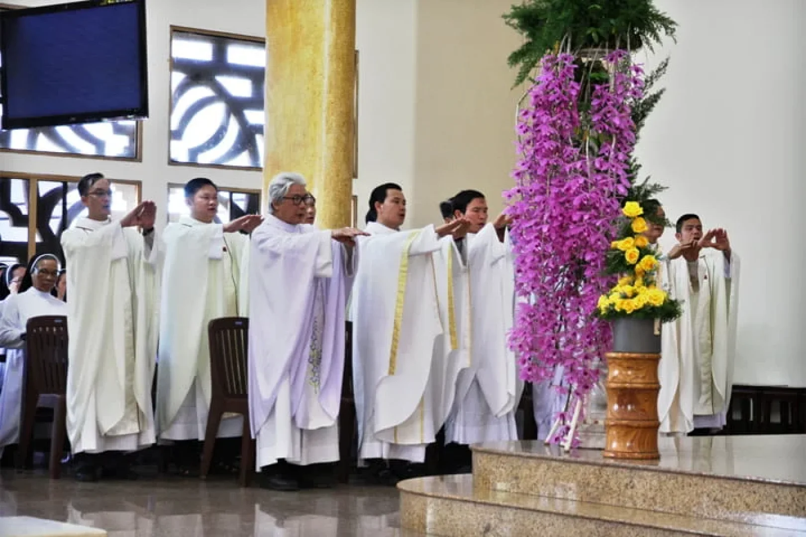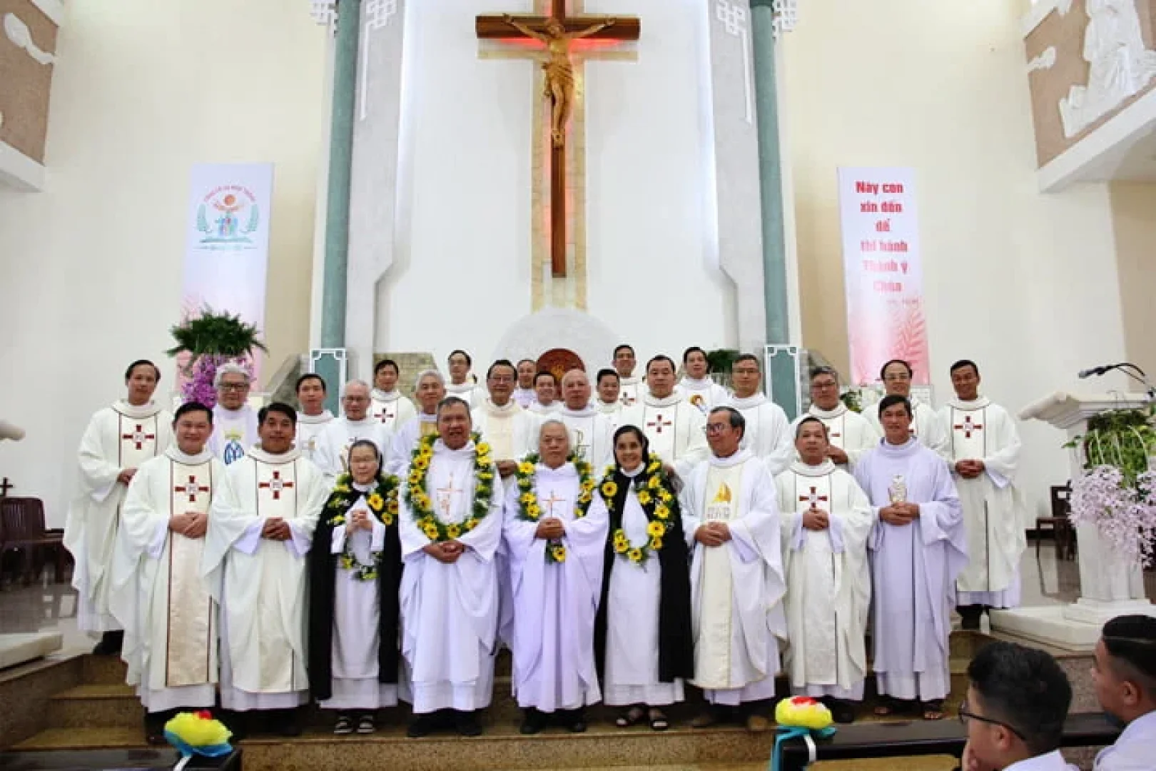 Xin hiệp thông với quý Cha, quý Nữ tu không chỉ trong Thánh lễ Tạ ơn hôm nay, nhưng cả năm Hồng ân này – năm CỦNG CỐ SỰ HIỆP THÔNG, cùng tạ ơn Chúa vì biết bao ơn lành Ngài đã ban cho Dòng ngang qua quý Cha, quý Nữ tu trong suốt 50 năm qua. Xin cho quý Cha, quý Nữ tu tiếp tục cảm nghiệm sâu sa Hồng ân Chúa ban và hoàn tất Thánh lễ tạ ơn dâng hiến đời mình.
