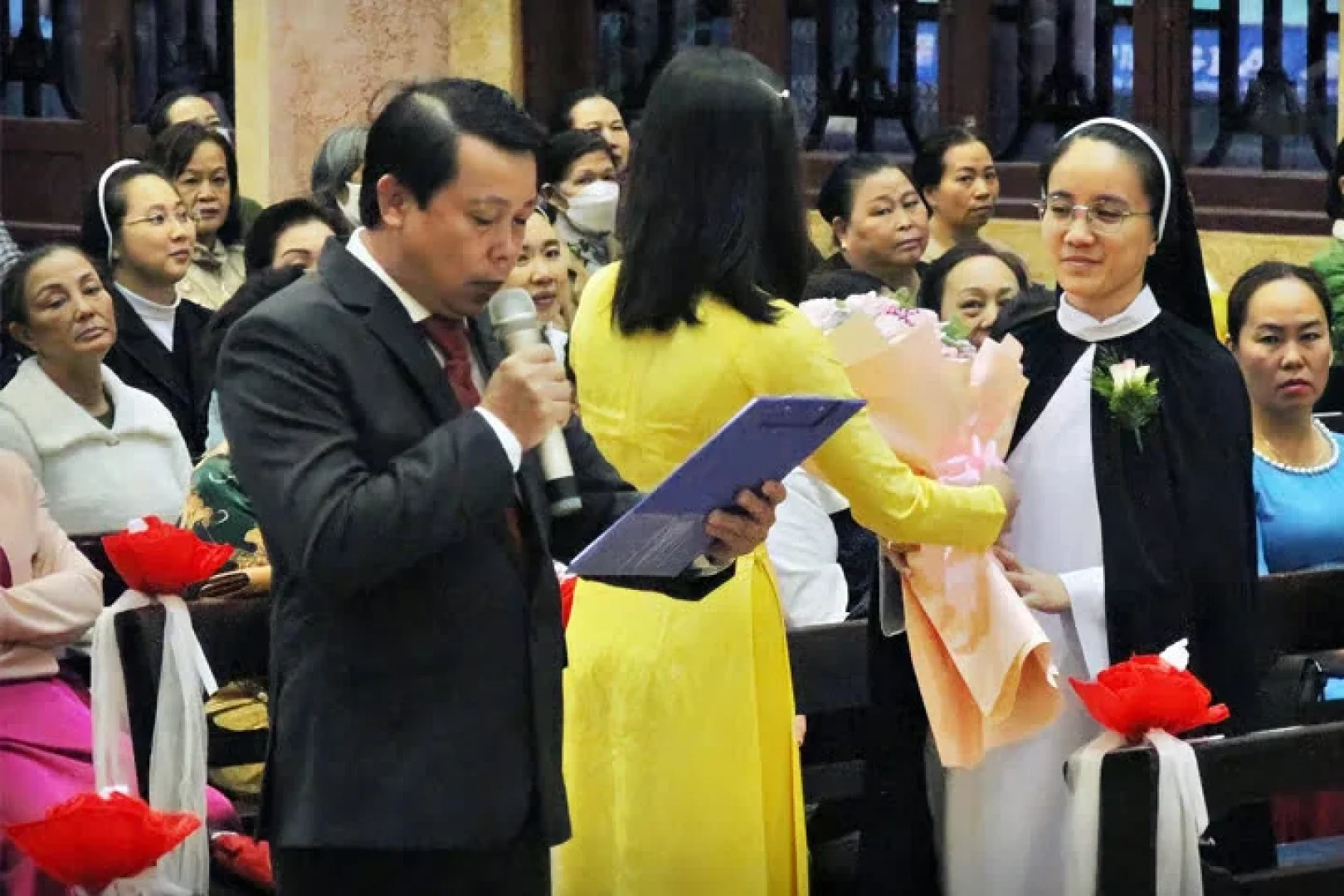 Sau Thánh lễ, vị đại diện cộng đoàn Giáo xứ Thánh Tâm chúc mừng Nữ Tu Maria và cầu chúc Chị thật nhiều sức khoẻ, niềm vui, bình an, hạnh phúc trong đời dâng hiến và trong tình yêu của THÁNH TÂM CHÚA GIÊSU, để dù có phục vụ ở đâu thì vẫn luôn giữ mãi được dấu ấn của ngày Vĩnh Khấn.