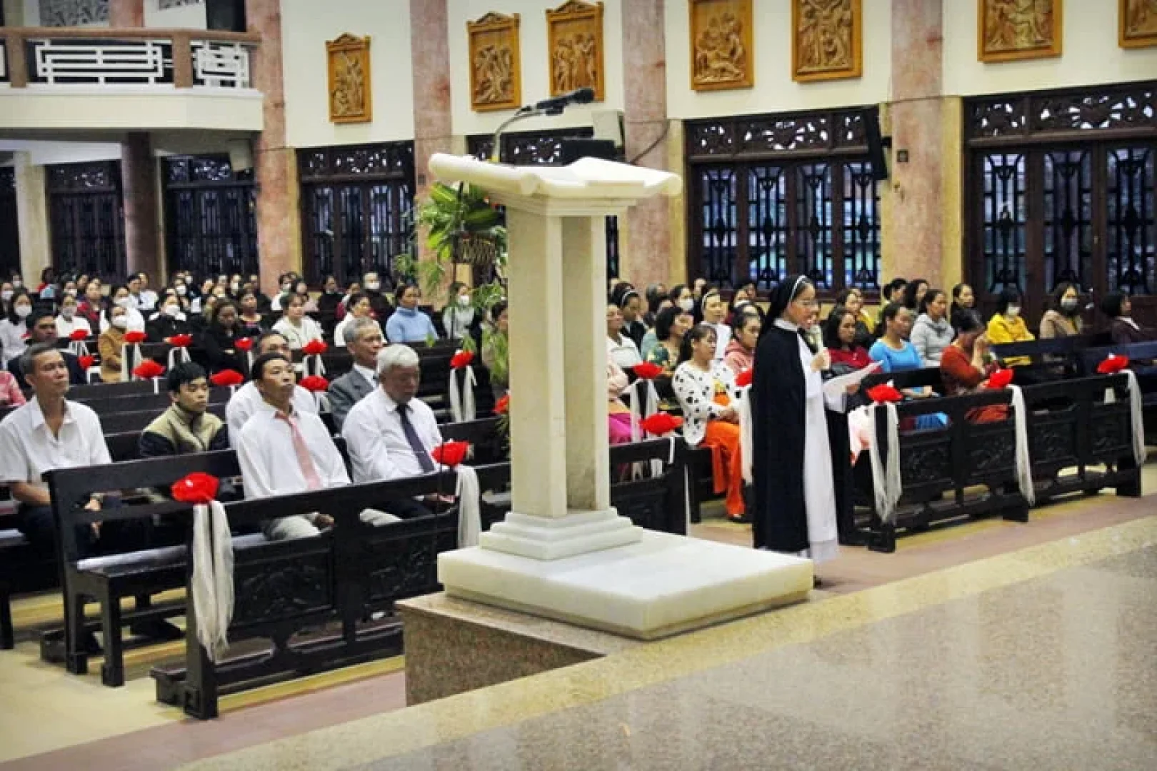 Tham dự Thánh lễ có cộng đoàn giáo xứ và thân nhân, đặc biệt có sự hiện diện của một số Nữ Tu Dòng Đa Minh Tam Hiệp, làm cho Thánh lễ thêm phần trang trọng, sốt sắng.