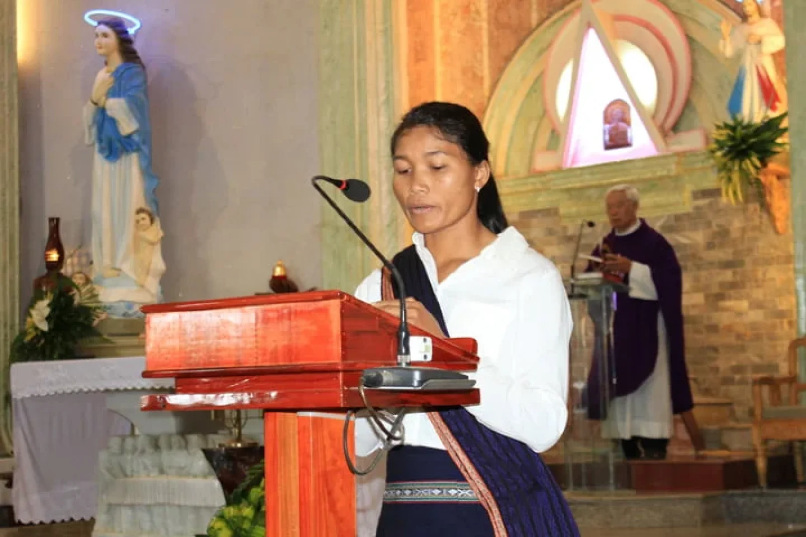 Lúc 5h00, Chúa Nhật ngày 27/11/2022, tại nhà thờ Giáo xứ Diom đã có Thánh lễ Tạ Ơn Hồng Ân Vĩnh Khấn của Sơ Maria Martine Touneh Nai Thiệp là người Con của Giáo xứ Diom và người Dân tộc Churu đầu tiên trong Giáo xứ dâng hiến trọn đời cho Chúa. Sơ Nai Thiệp đã tuyên khấn trọng thể trong Tu Đoàn Tông Đồ Donum Dei (Nước Hằng Sống) tại Argentina – Lujan, ngày 18/11/2021, nhưng vì dịch Covid-19, đến nay Sơ mới trở về quê hương để cùng với Ông Bà Cố, gia đình và Giáo xứ hiệp dâng Thánh lễ Tạ Ơn Thiên Chúa.