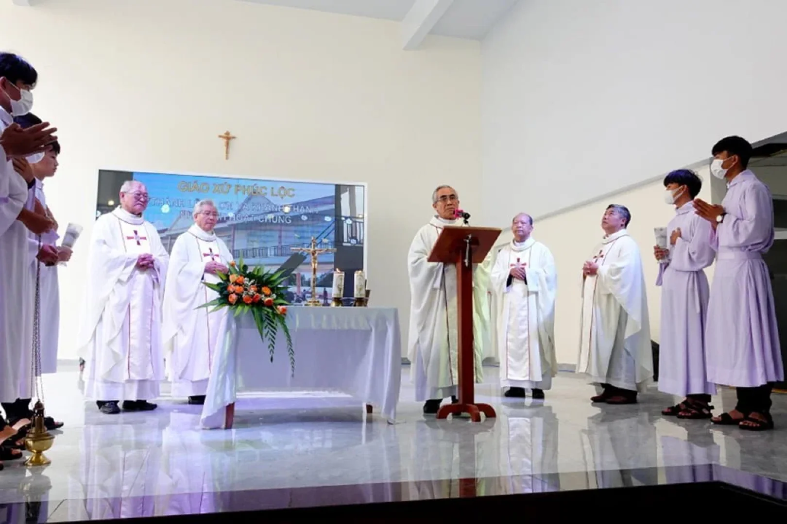 Trong bài giảng lễ, Cha Quản hạt chia sẻ với cộng đoàn về lòng biết ơn. Đó là điều đáng trân trọng khi nhận ra những hồng ân mà Chúa ban cho giáo xứ. Ngay từ khi thành lập tên gọi của Giáo xứ – PHÚC LỘC – đã nói lên điều đó. Để xây dựng được các công trình ngày càng đẹp, phát triển cơ sở vật chất như ngày hôm nay, giáo xứ đã sống tinh thần hiệp thông, đoàn kết, có lòng yêu thương, chia sẻ … cùng với những ơn lành của Chúa. Chúng ta tạ ơn Chúa vì những thành quả này.