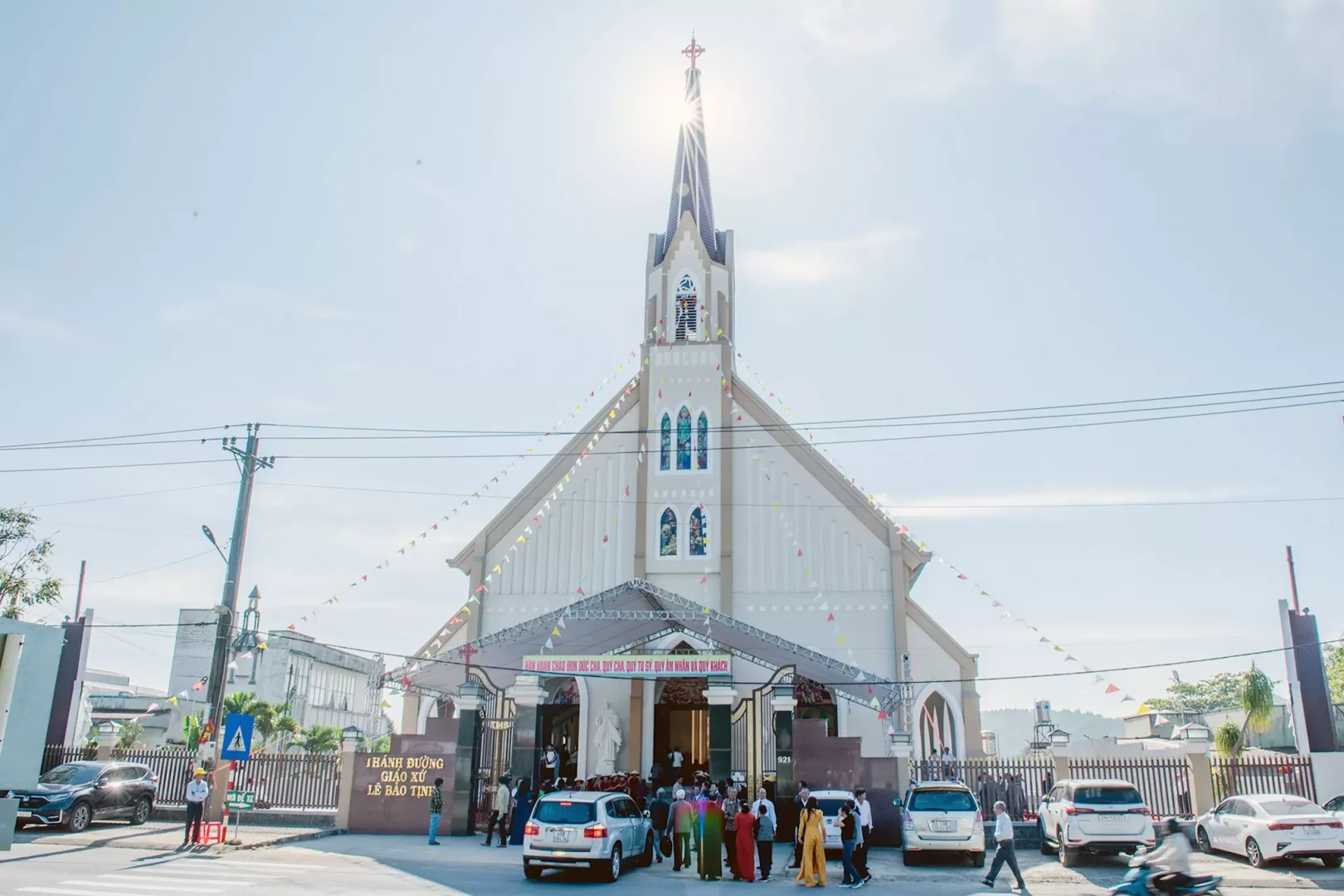 Trong bầu khí hân hoan vui mừng ngày cung hiến và khánh thành ngôi nhà thờ mới, từ sáng sớm cộng đoàn Giáo xứ Lê Bảo Tịnh đã tập trung đông đảo tại khuôn viên nhà thờ, để chào đón Đức cha, quý Cha, quý Tu sỹ nam nữ, quý khách về tham dự ngày lễ trọng đại này.
