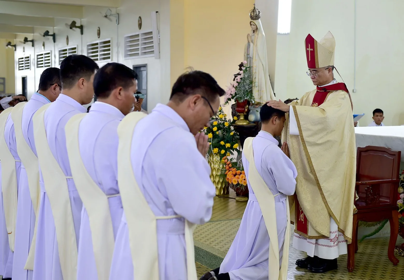 Vào lúc 9 giờ ngày 9/8/2023 tại Đan viện Châu Sơn, Đức Cha Đa Minh Nguyễn Văn Mạnh chủ sự thánh lễ Truyền chức Linh Mục cho 6 Thầy Phó tế: