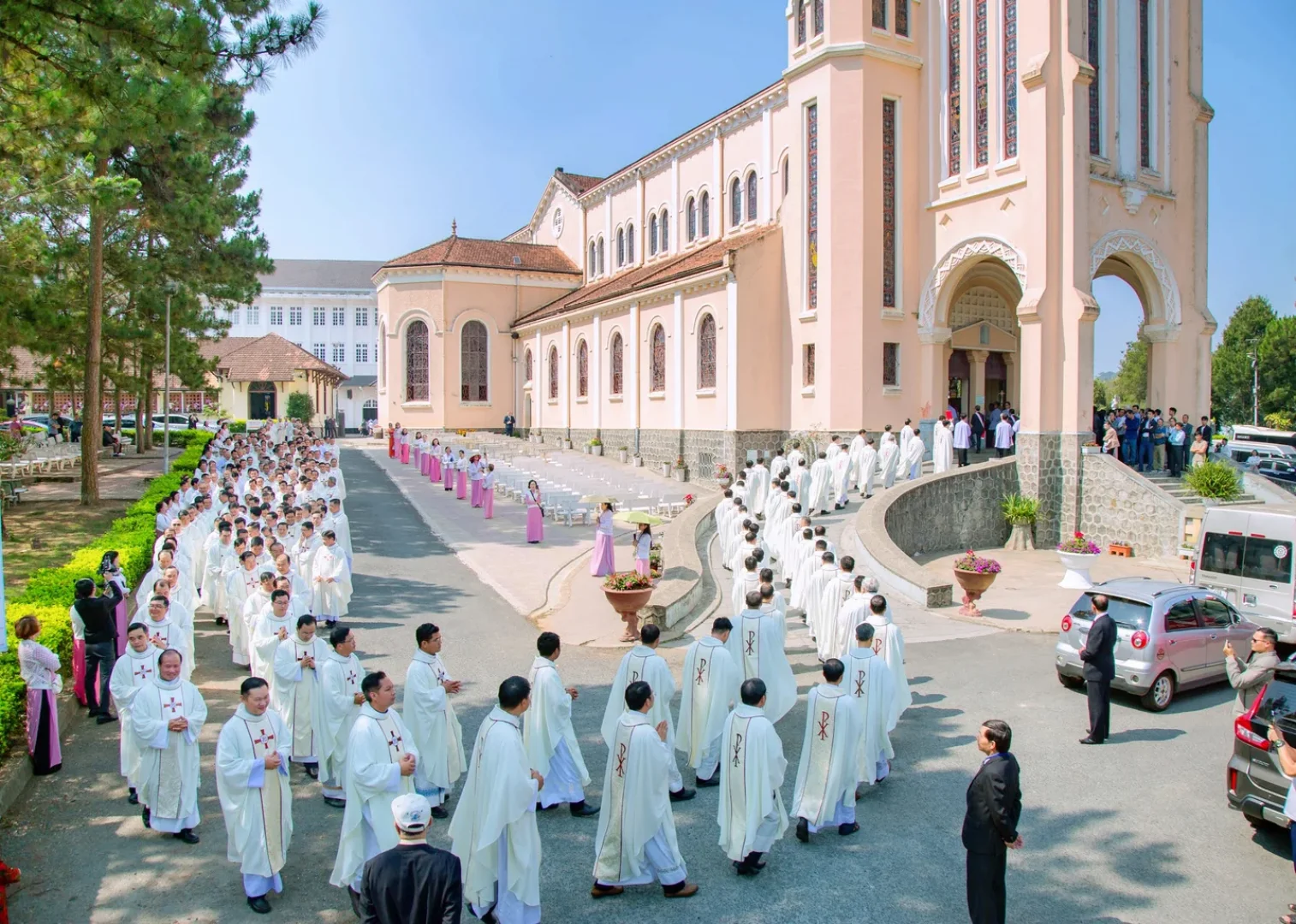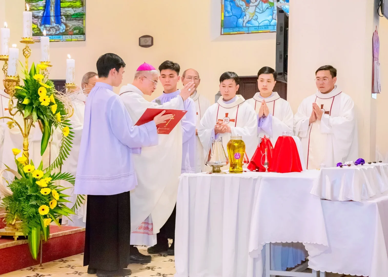 WGPĐL (01/04/2026) – “Lạy Chúa, con sẽ ca ngợi tình thương của Chúa đến muôn muôn đời” (Tv 88). Trong bầu khí linh thánh của Tuần Thánh, sáng thứ Tư ngày 01/04/2026, tại Nhà thờ Chính Tòa Đà Lạt, Đức cha Đaminh Nguyễn Văn Mạnh – Giám mục Giáo phận – đã chủ sự Thánh lễ Truyền Dầu. Đây là dịp trọng thể để Linh mục đoàn lặp lại lời hứa khi chịu chức và Đức Giám mục thánh hiến các loại Dầu Thánh dùng trong đời sống bí tích của Dân Chúa.
