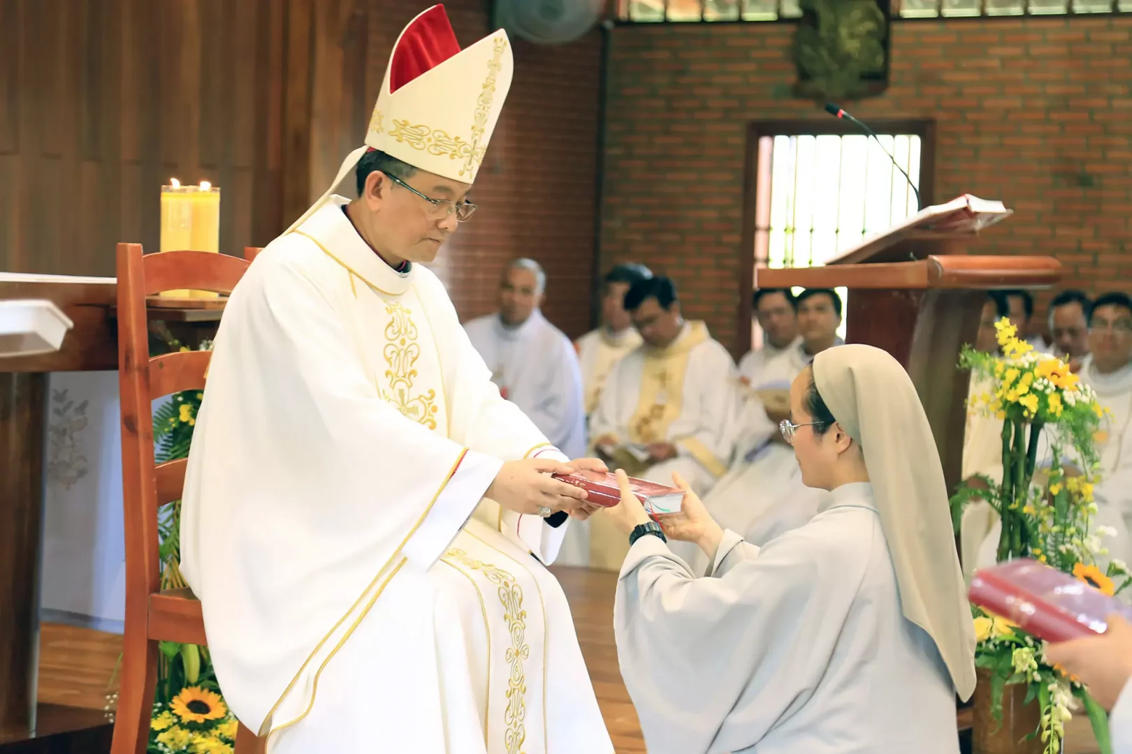 Vào lúc 09g00 sáng ngày 07/10/2024, tại nguyện đường Đan Viện Nữ Biển Đức Đồi Hiển Linh – Lộc Nam, Đức Cha Giuse Đỗ Quang Khang, Giám mục Giáo phận Bắc Ninh đã chủ sự Thánh lễ tuyên khấn trọng thể cho sáu nữ tu thuộc Đan viện.