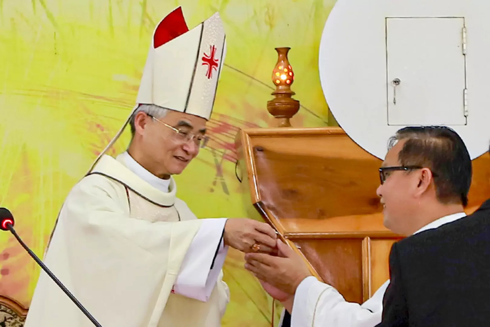 Sau khi lặp lại lời tuyên thệ khi chịu chức linh mục trước mặt Đức Giám mục và đoàn dân được trao phó, Cha tân quản xứ được Đức Giám Mục trao: