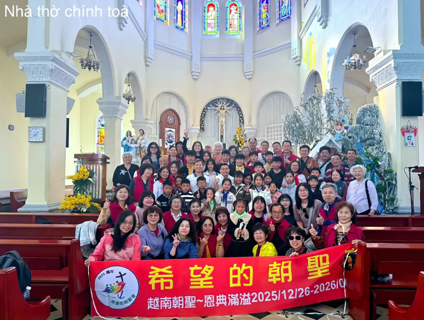 Tại nhà thờ Chính Toà Đà Lạt, đoàn thiếu nhi Giáo họ Đạ Nhim tình cờ gặp một đoàn hành hương đến từ Đài Trung, Đài Loan. Tất cả vui mừng vì cùng gặp nhau tại Hang đá. Dù khác ngôn ngữ, nhưng mọi người lớn bé cùng nhau hát dâng lên Chúa Hài đồng bài hát Hành Hương Hy Vọng.