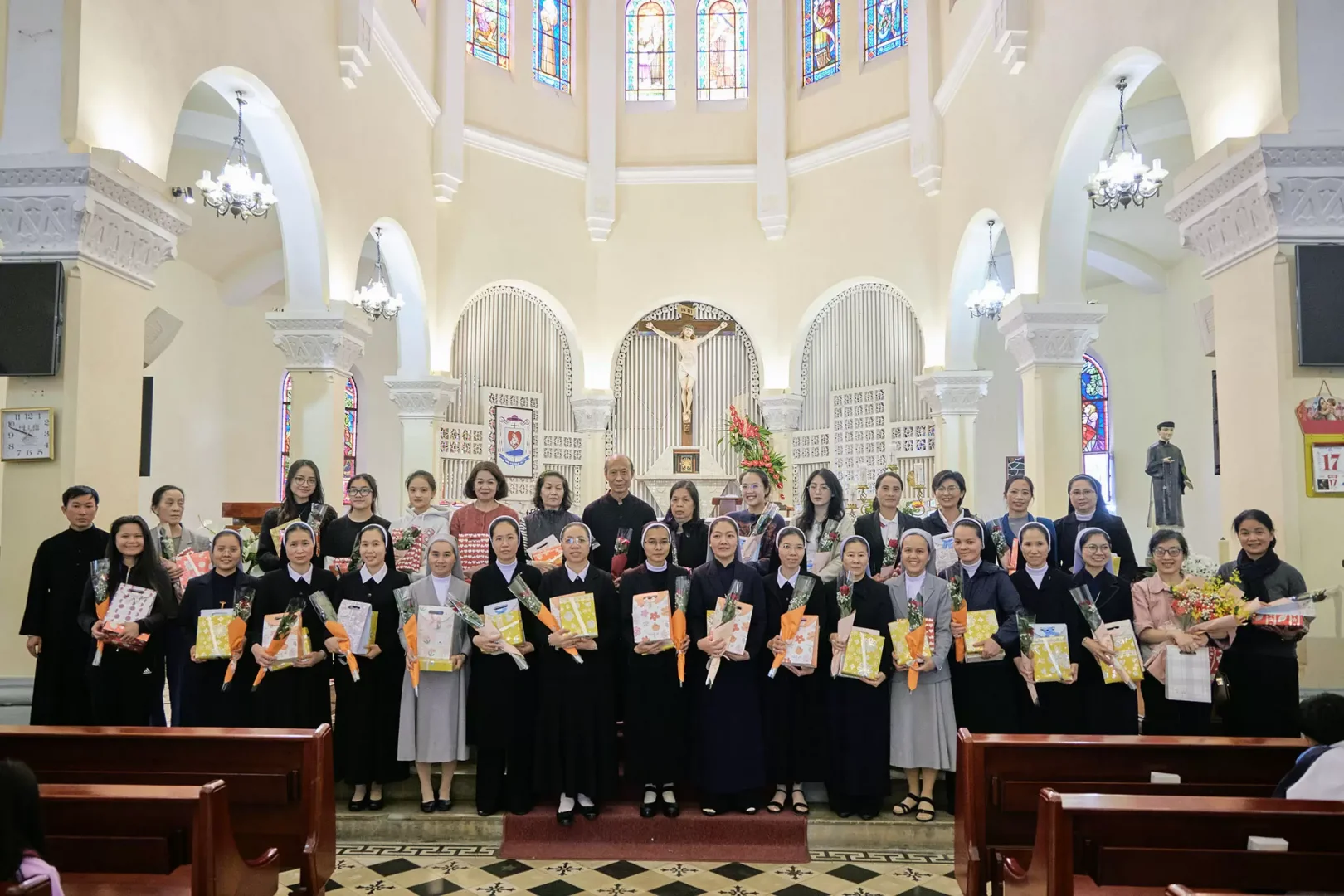 Cuối cùng, các em gửi đến Cha sở, Cha phó, quý Thầy, quý Sơ và các anh chị Giáo lý viên những đóa hoa tươi thắm, cùng những món quà nhỏ thể hiện sự yêu mến và biết ơn của mình.