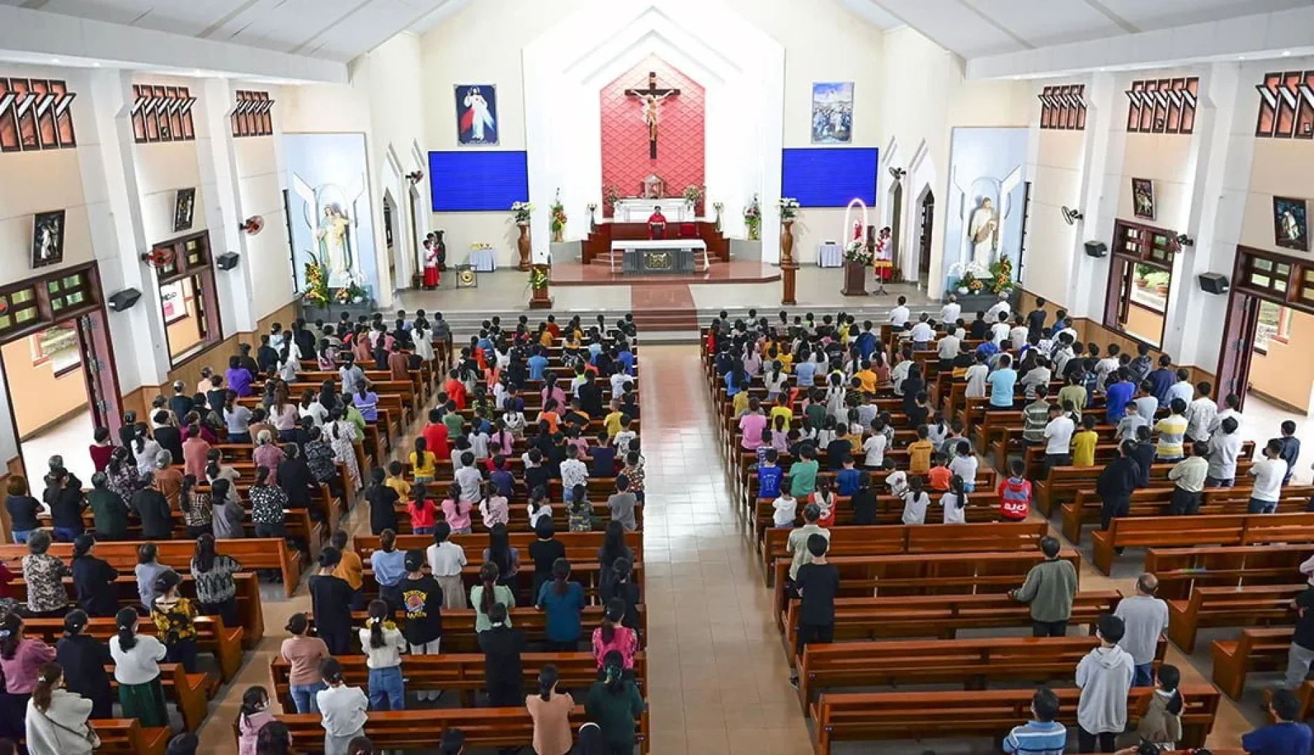 Đến chiều, các em đã cùng nhau tham dự Thánh lễ thật sốt sắng, nghiêm trang và thánh thiện.