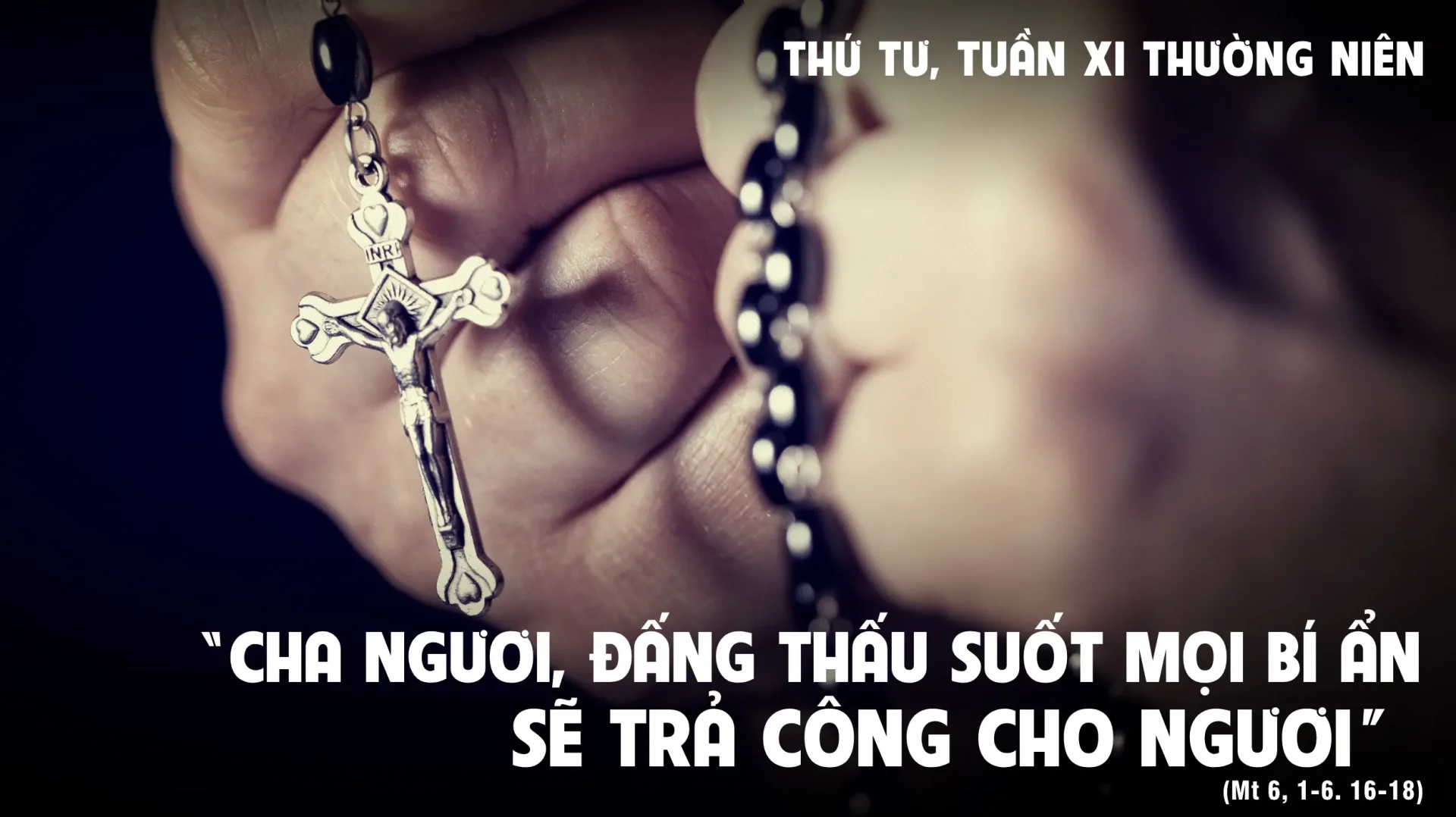 “Rồi khi các con cầu nguyện, thì cũng chớ làm như những kẻ giả hình: họ ưa đứng cầu nguyện giữa hội đường và các ngả đàng, để thiên hạ trông thấy. Quả thật, Ta bảo các con: họ đã được thưởng công rồi. Còn con khi cầu nguyện, thì hãy vào phòng đóng cửa lại mà cầu xin với Cha con, Ðấng ngự nơi bí ẩn, và Cha con, Ðấng thấu suốt mọi bí ẩn, sẽ trả công cho con.
