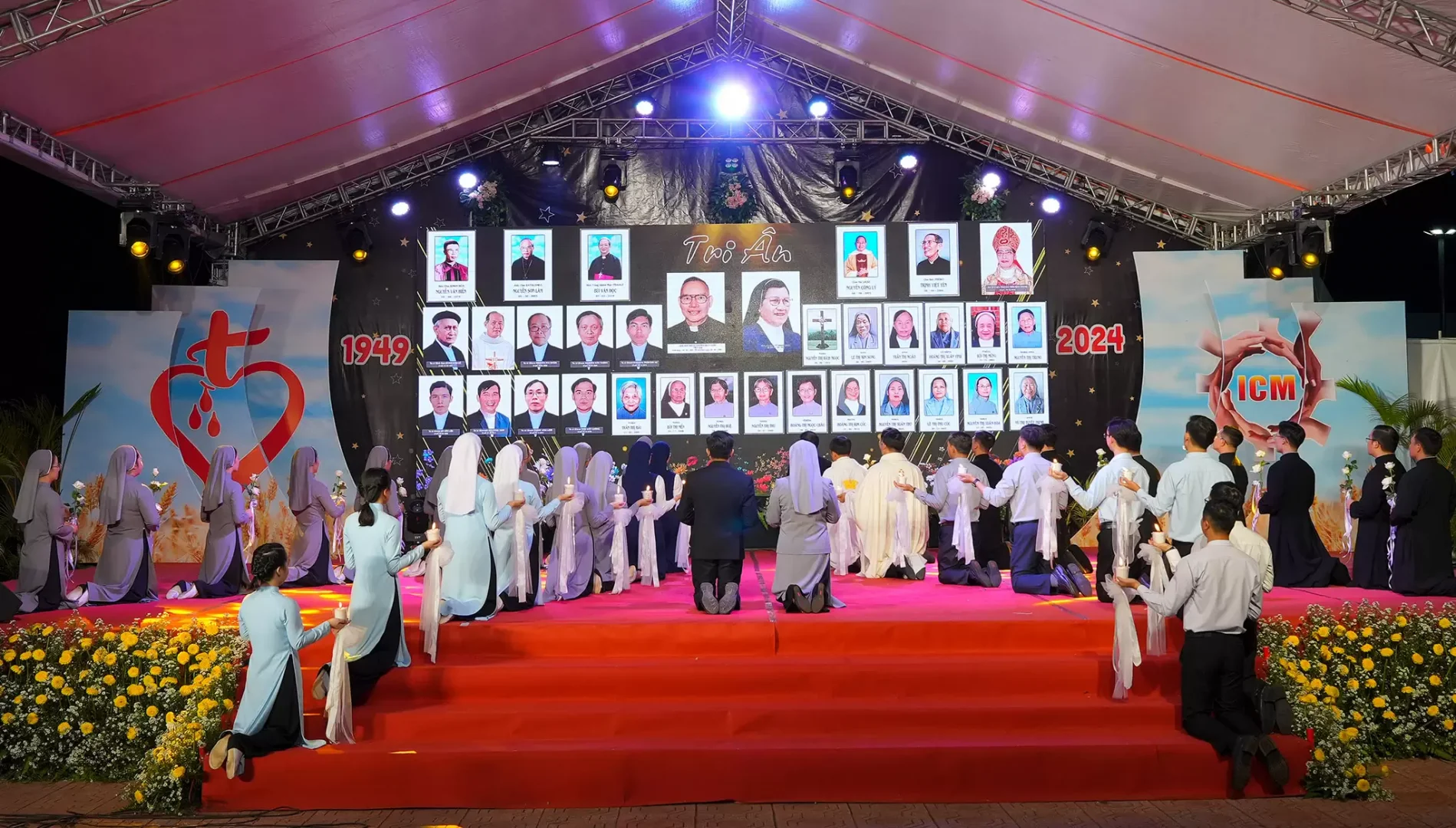 Nhân dịp bế mạc Năm Thánh mừng kỷ niệm 75 năm hình thành và phát triển, tối ngày 24-03-2025, hai Tu hội Nam Nữ Nhập Thể – Tận Hiến – Truyền Giáo ICM, tổ chức chương trình diễn nguyện HOAN CA TẠ ƠN, tại khuôn viên nhà mẹ Nữ Tu hội, Bảo Lộc.