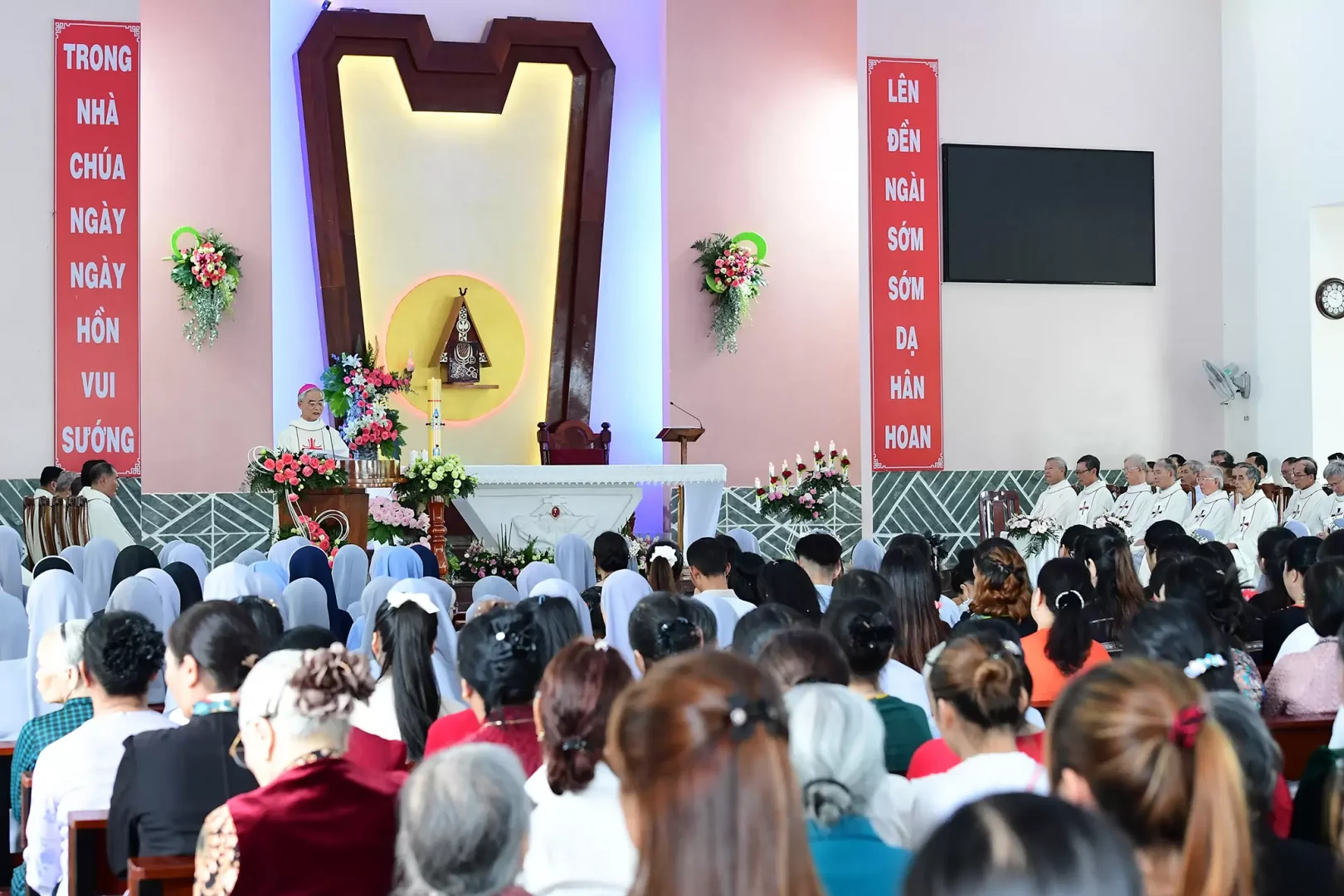 Thánh lễ diễn ra trong bầu khí trang nghiêm và sốt sắng. Đức Cha Đaminh Nguyễn Văn Mạnh, Giám mục Giáo phận Đà Lạt và cũng là Đấng Bản quyền của Tu hội, đã chủ tế thánh lễ. Khoảng 50 linh mục từ trong và ngoài giáo phận đã về tham dự, cùng cầu nguyện tạ ơn Chúa với các Tân Thành Viên nói riêng và Tu hội nói chung. Sự hiện diện của đông đảo linh mục, tu sĩ nam nữ, quý thân nhân, ân nhân và toàn thể quý khách đã tạo nên một không gian linh thiêng, thấm đẫm tình yêu thương và sự hiệp nhất.