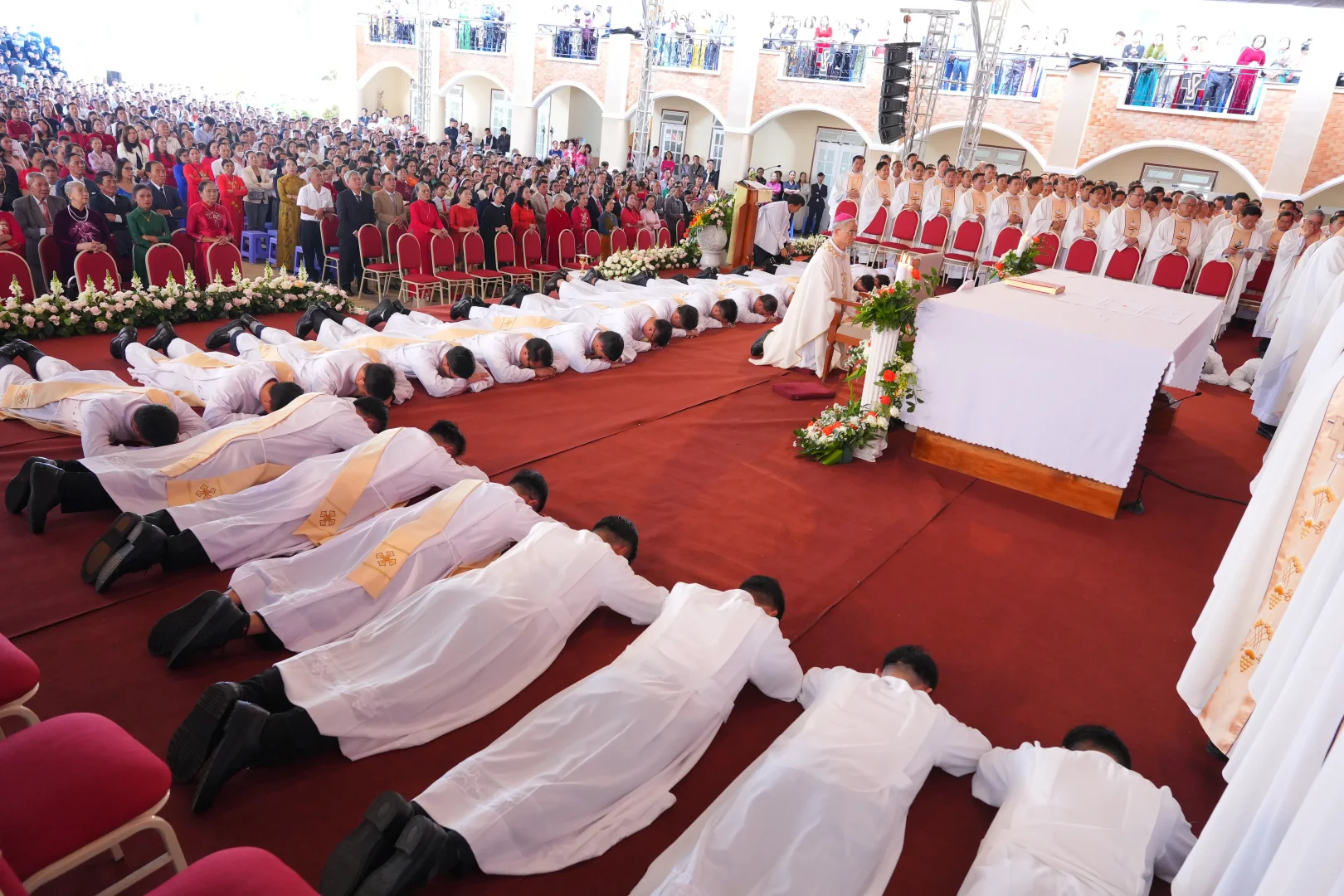 Lúc 8 giờ, thứ Ba, ngày 20/8/2025, tại Học viện Durando dòng Vinh Sơn Phaolô Đà Lạt, Đức cha Đaminh Nguyễn Văn Mạnh-Giám mục Giáo phận Đà Lạt chủ sự Thánh lễ Truyền chức Phó tế cho 9 thầy và Linh mục cho 21 thầy phó tế thuộc Tu hội Truyền giáo Vinh Sơn (CM).