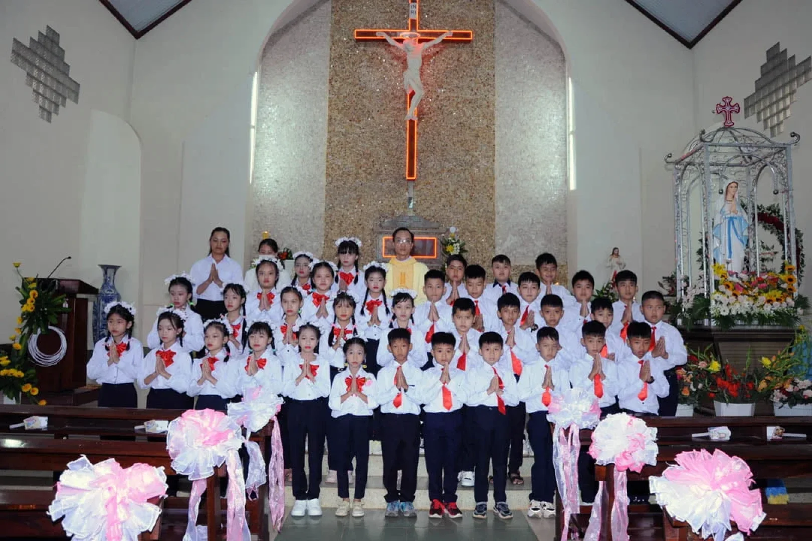 Sáng Chúa nhật ngày 29/5/2022, lễ Chúa Thăng Thiên, Cha Quản xứ Giáo xứ Hòa Nam đã cho 37 em Thiếu nhi được xưng tội rước lễ lần đầu trong dịp này.